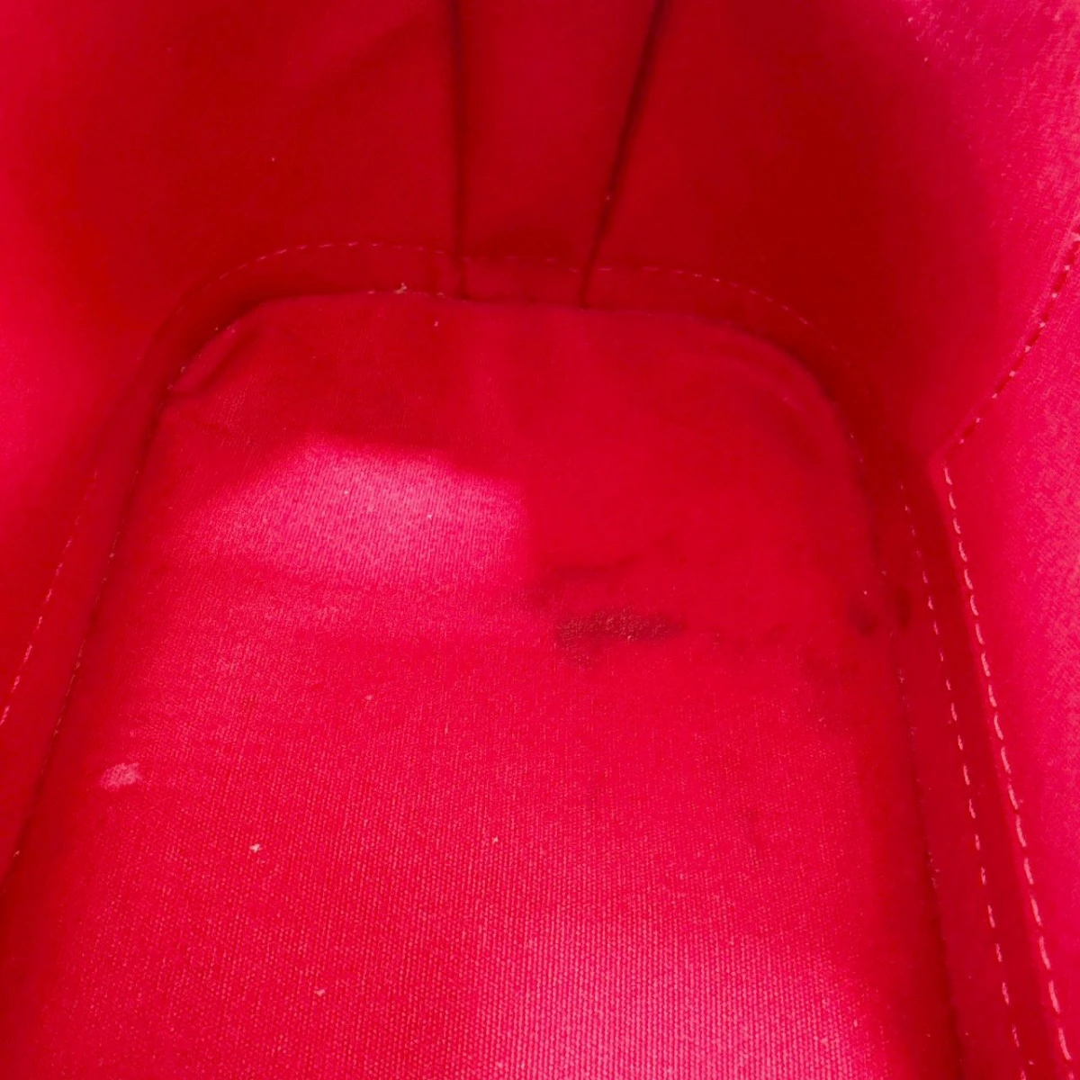 | 外側 | ランク:AB 表面:薄汚れ、スレ ハンドル・ストラップ:小キズ、薄汚れ 表面、底面、コーナー部分に黒い薄汚れやスレがあります ハンドル部分に白い汚れ、小さな剥がれ、小さなキズがあります ファスナー部分の金属、パドロックに使用感があります ショルダーストラップに小さな白い汚れがあります |