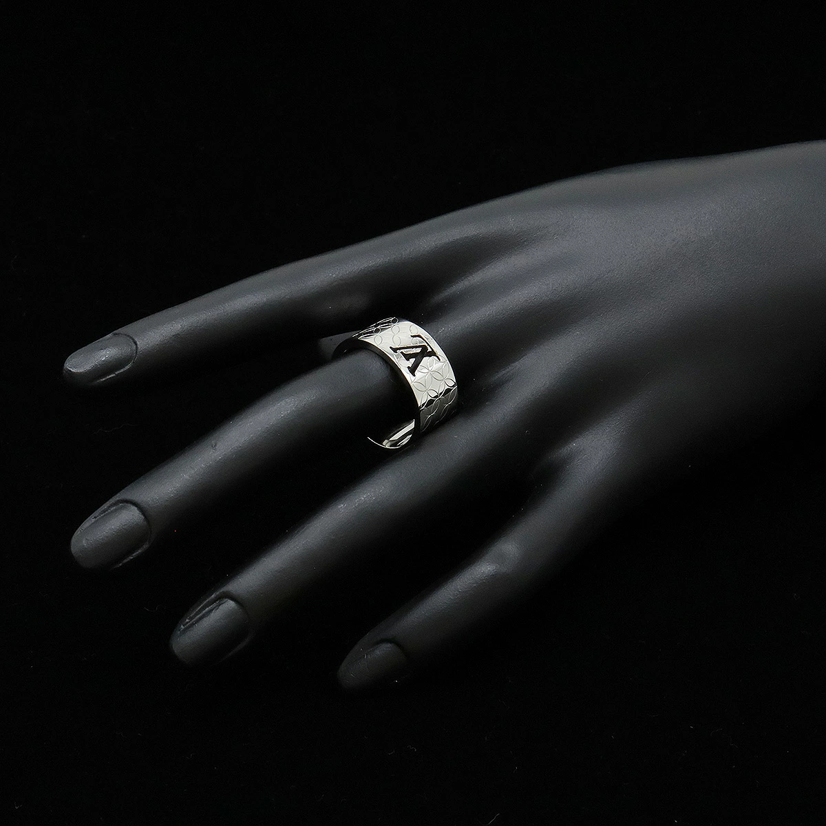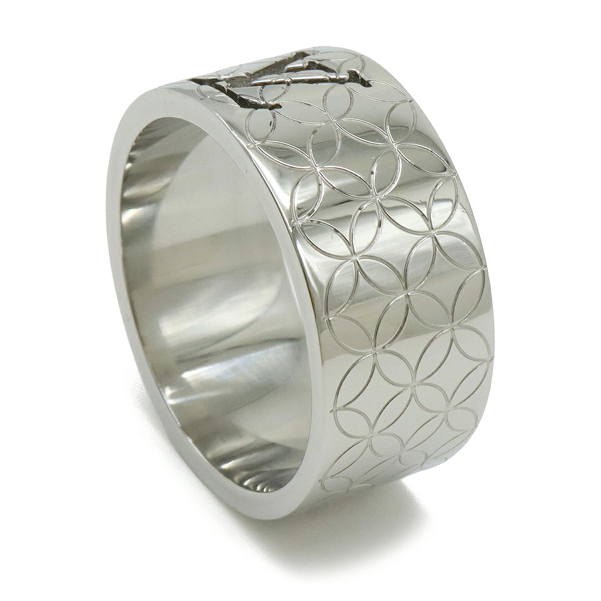 中央にロゴが型抜きされ、ぐるりとサークル状のフラワーモチーフが施された、ブランドアピール抜群のバーグ・シャンゼリゼリング。
