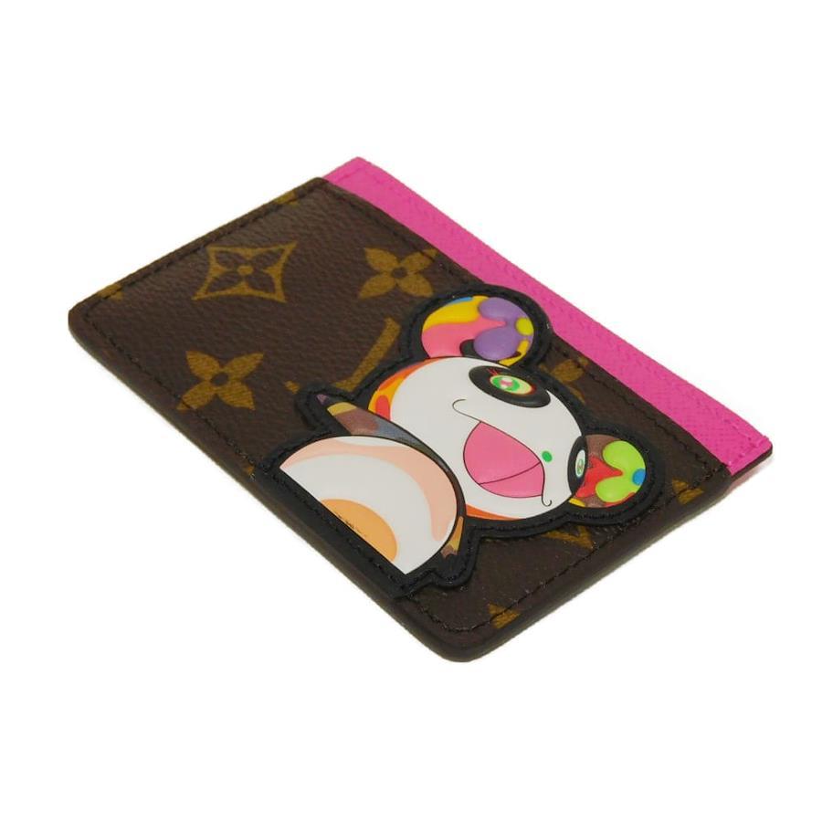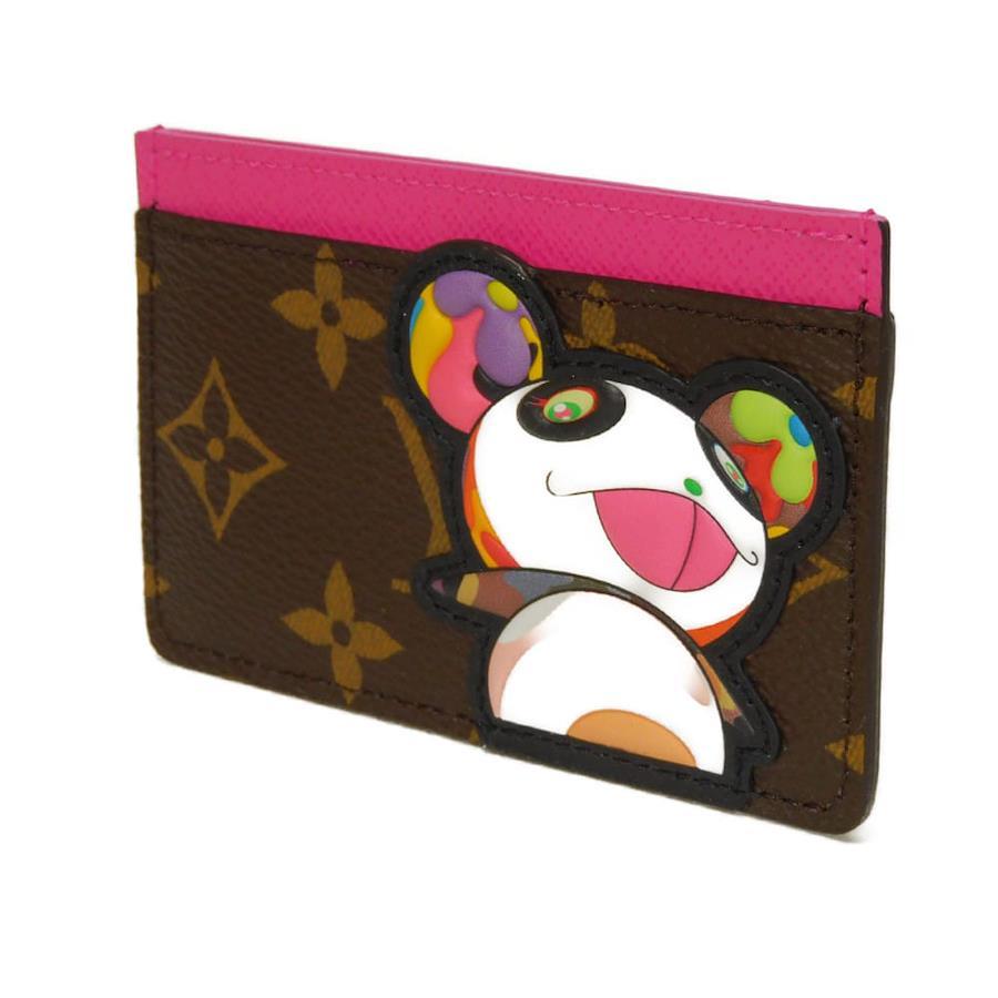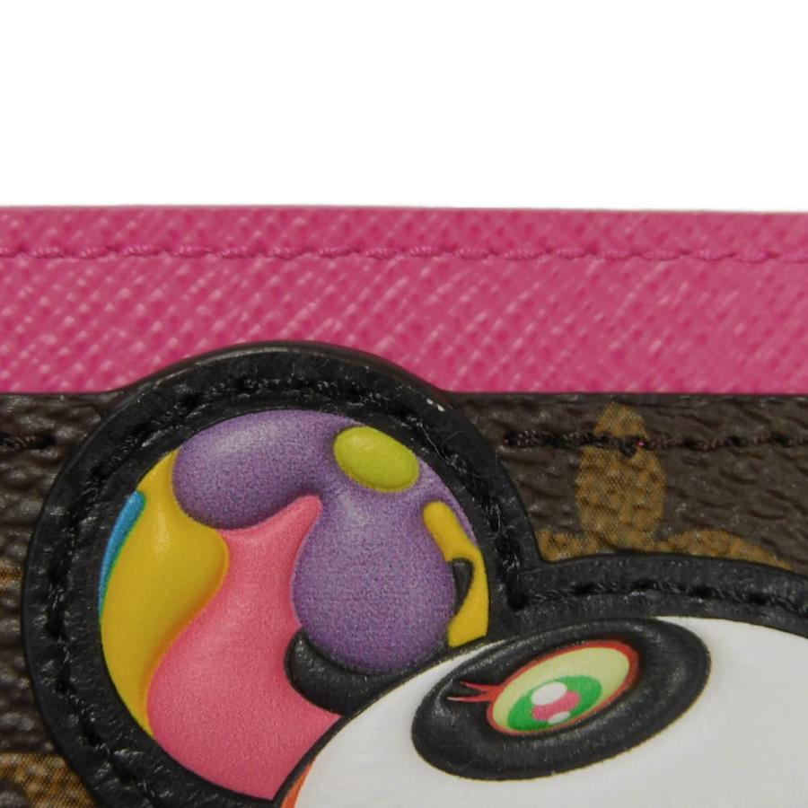 Pre-owned Louis Vuitton card case, LV×TM Porte Carte Sample, Takashi Murakami pass case with RFID IC chip, Monogram Panda design in pink, M13439. Elegant, high-quality, sophisticated, sophisticated, for men and women.