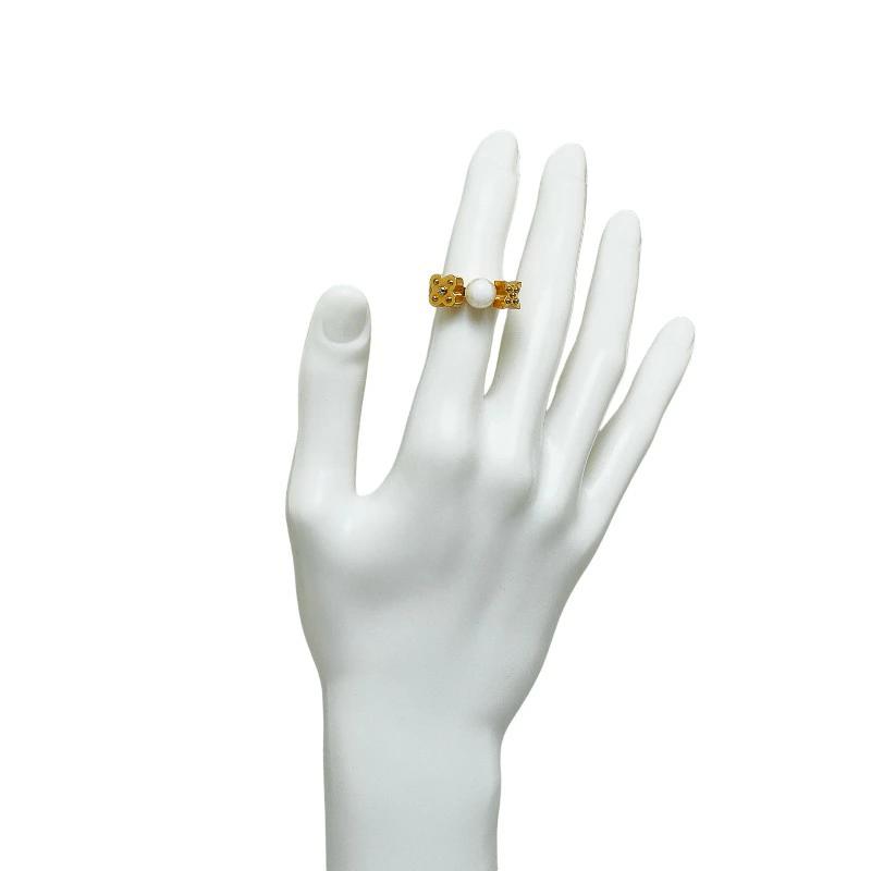 Pre-owned Louis Vuitton Charmy Ring #M M75482, Gold Plated with Faux Pearl, Women's.