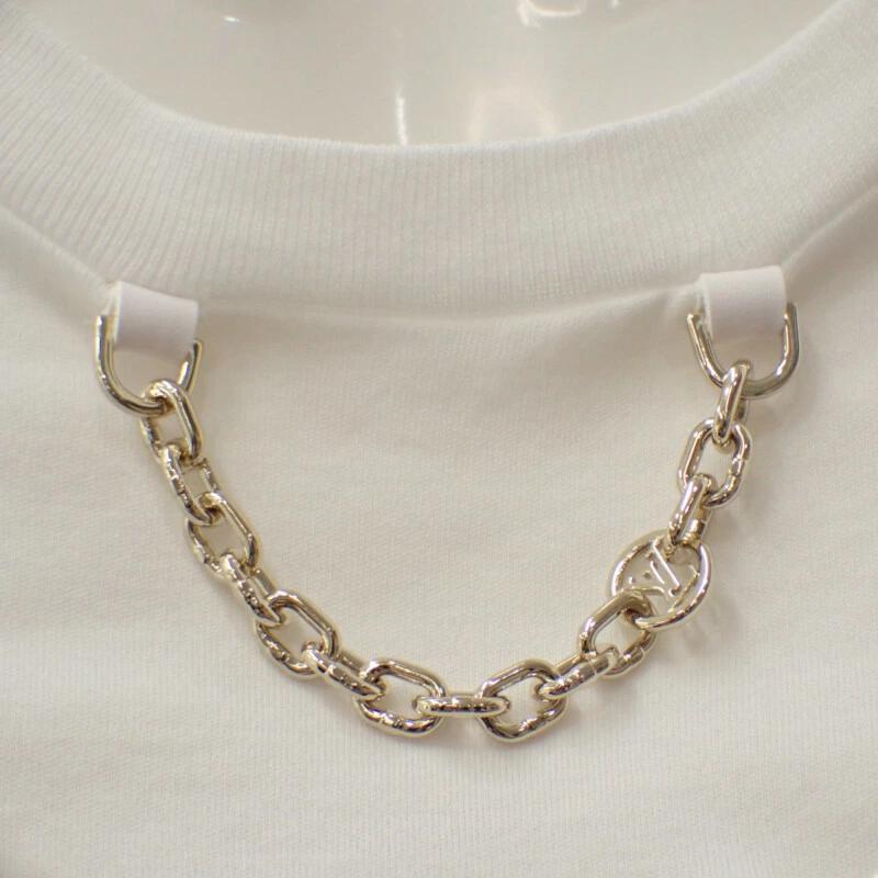 胸元に配されたLVチェーンとカーシブシグネチャーが印象的な一枚。上質なコットン素材を使用し、滑らかな肌触りと軽やかな着心地を実現。コンパクトな丈感がスタイルを美しく見せ、モードな印象を際立たせます。ホワイトのクリーンな色合いが、どんなコーディネートにも洗練を添えるアイテムです。