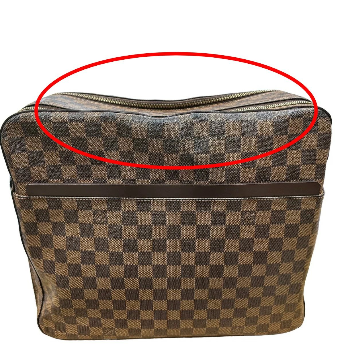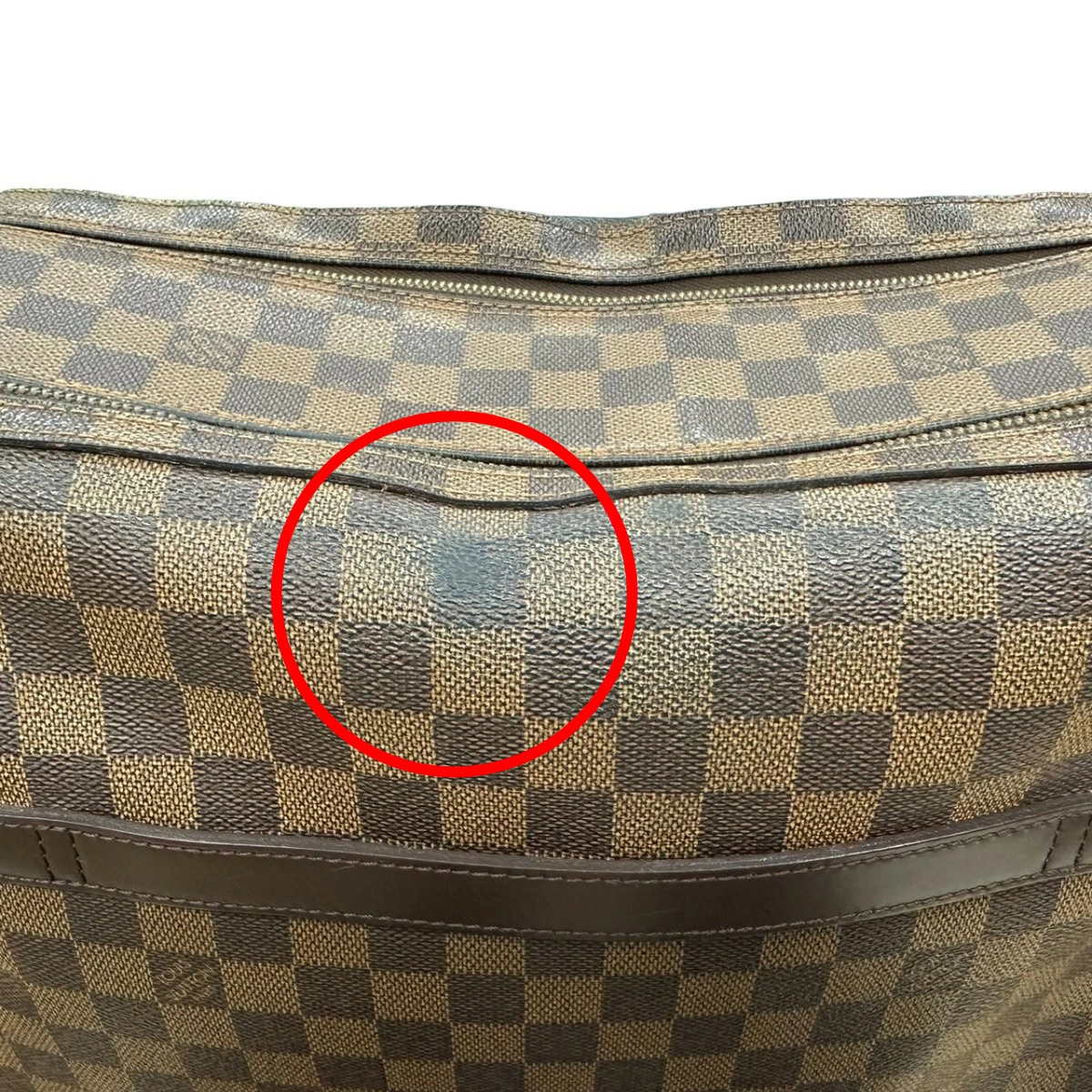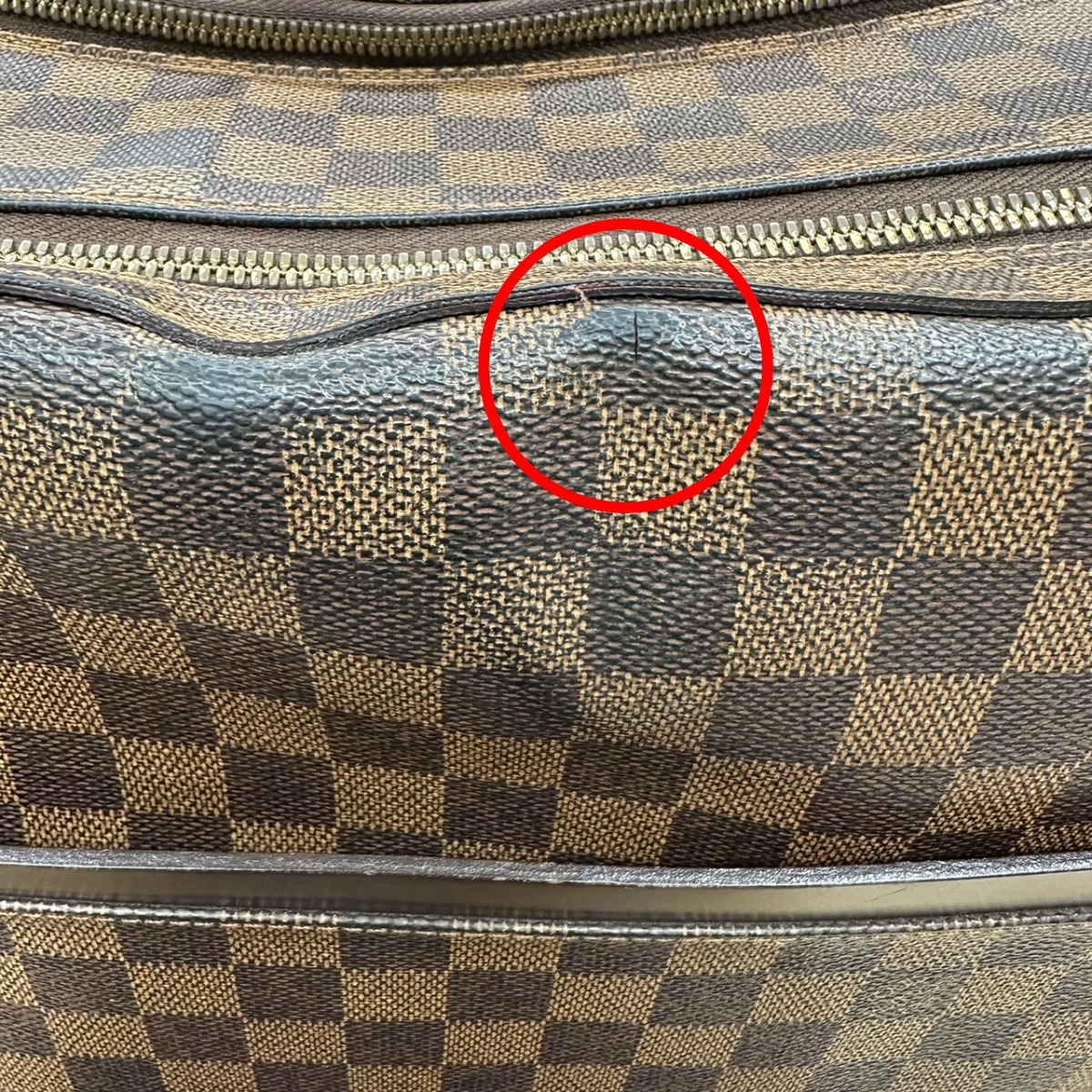 ファスナー付近のダミエ地にスレで黒くなっている部分があります(画像11枚目参照)