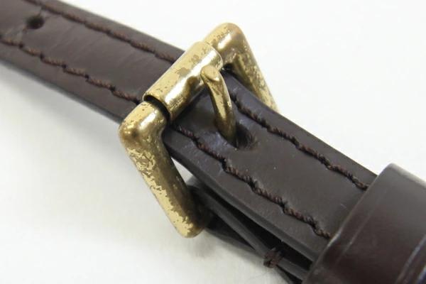 | 状態 | 革:薄キズ・薄スレ・シワあり。フチ(コバ)ヒビ割れ・薄汚れあり。ベルト穴付近それぞれに亀裂あり。 金具:小キズ・アタリキズあり、先端に色落ちあり、調節金具には酸化・メッキ剥がれあり。 |