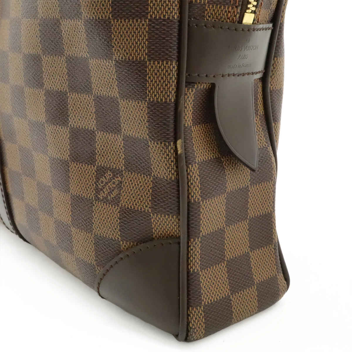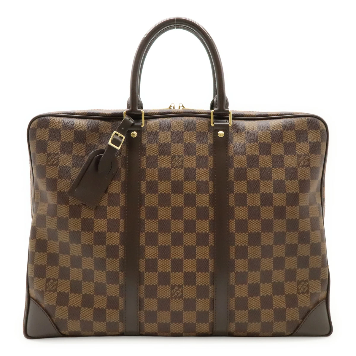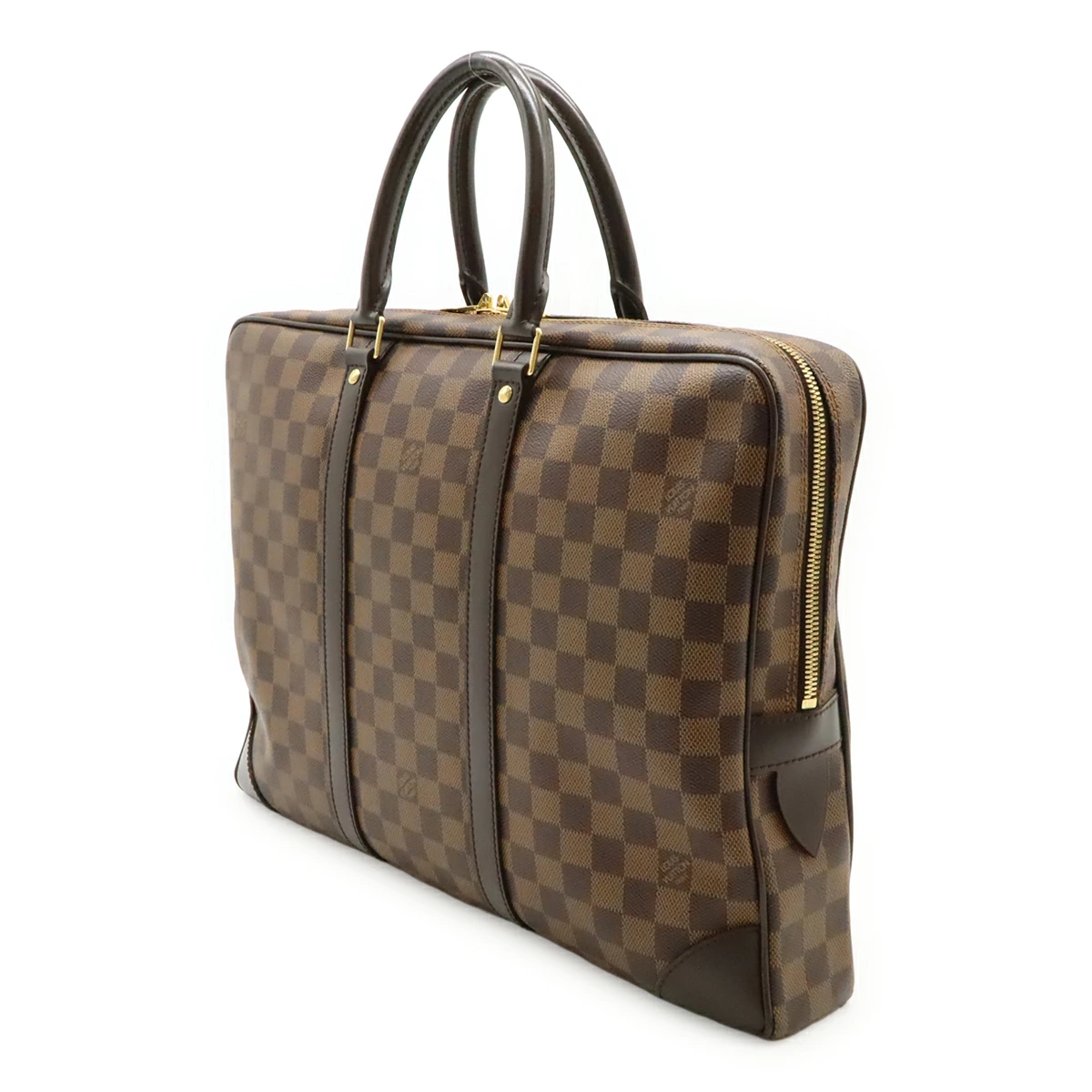 スクエア型のかっちりしたフォルムが高級感のあるダミエのシックなビジネスバッグ。