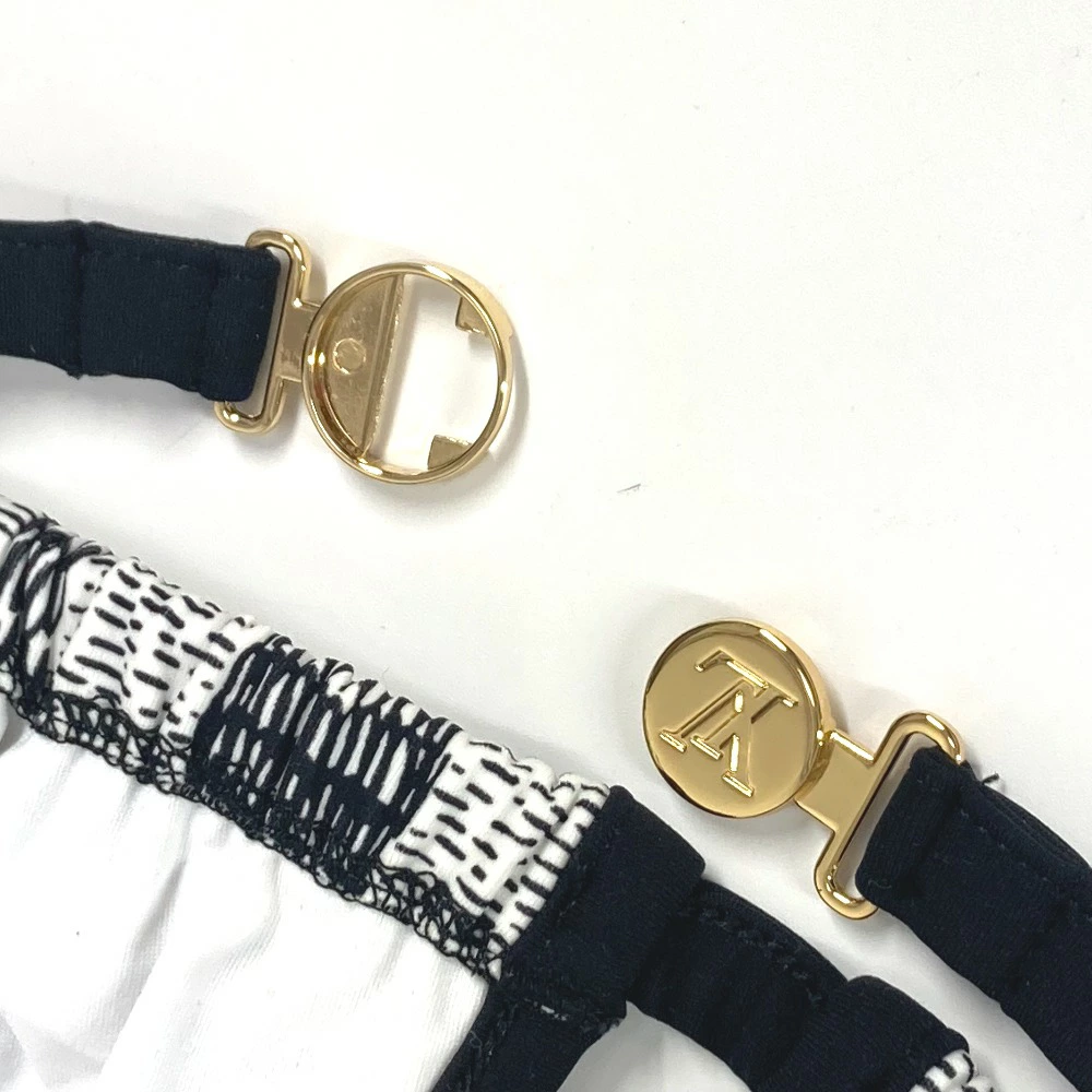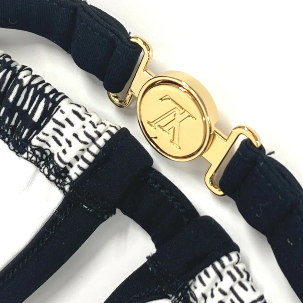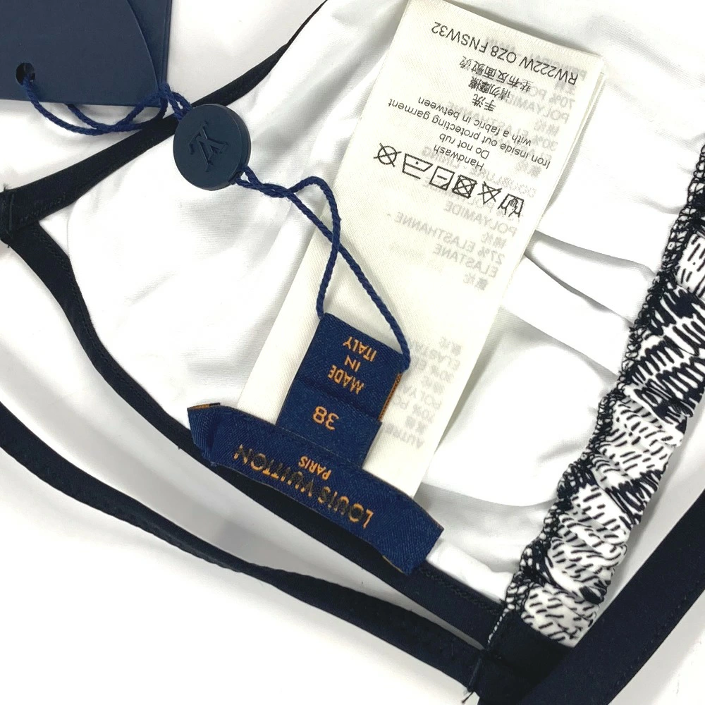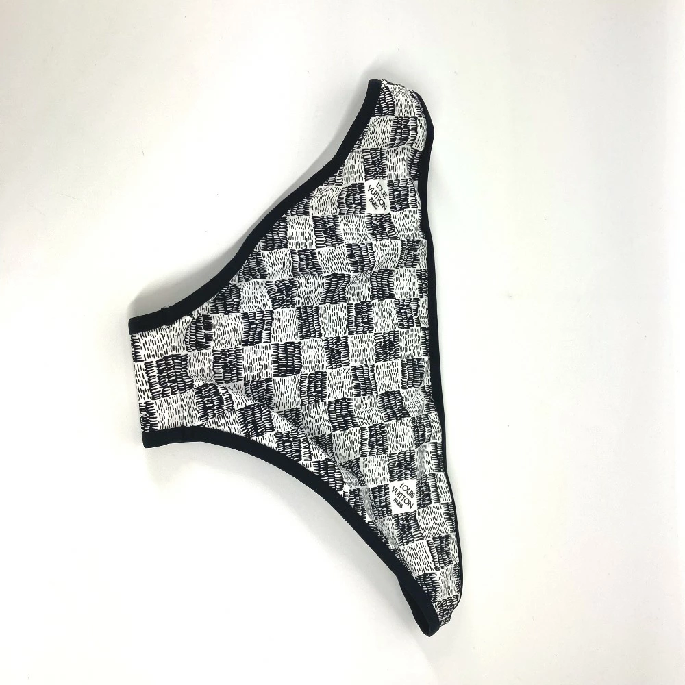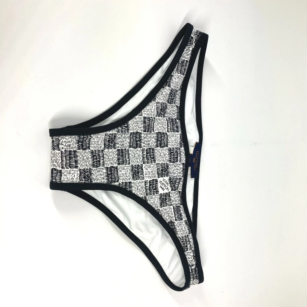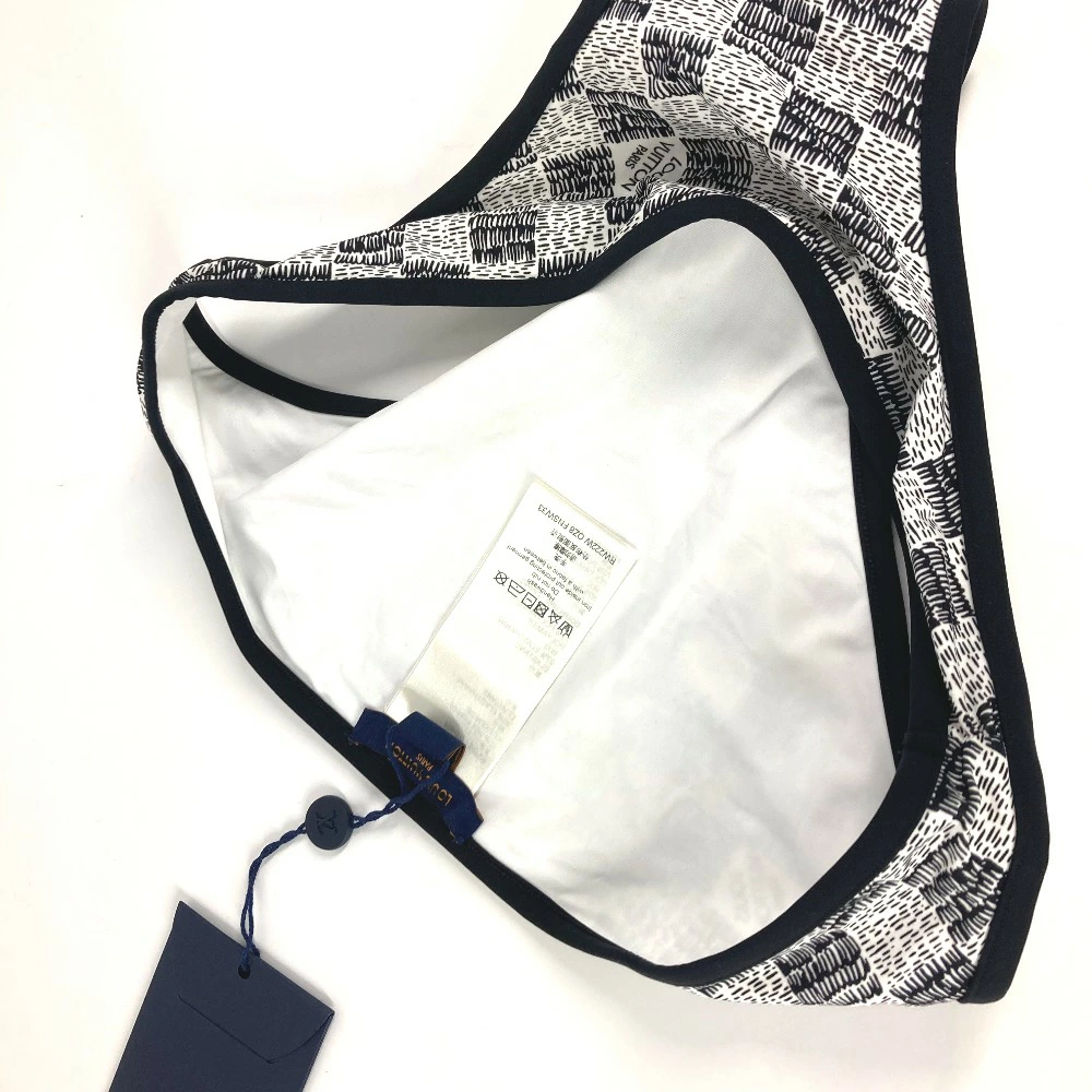 Pre-owned Louis Vuitton Damier print bikini and swimwear set (top and pants) RW222W, made of polyamide and elastane, white, unused.