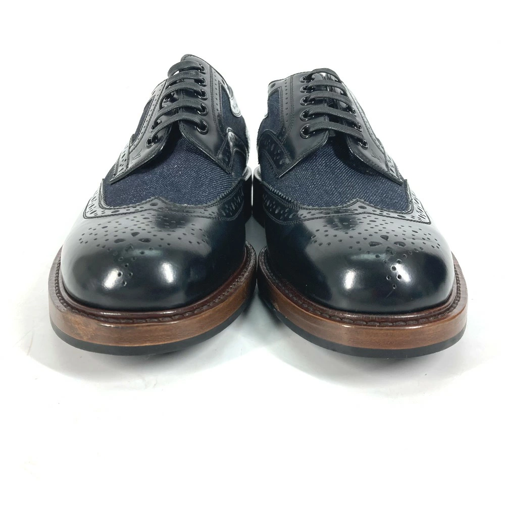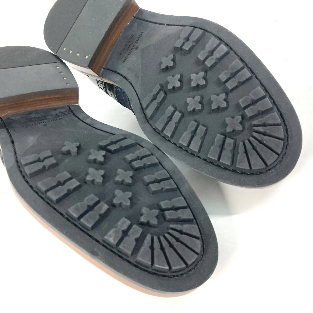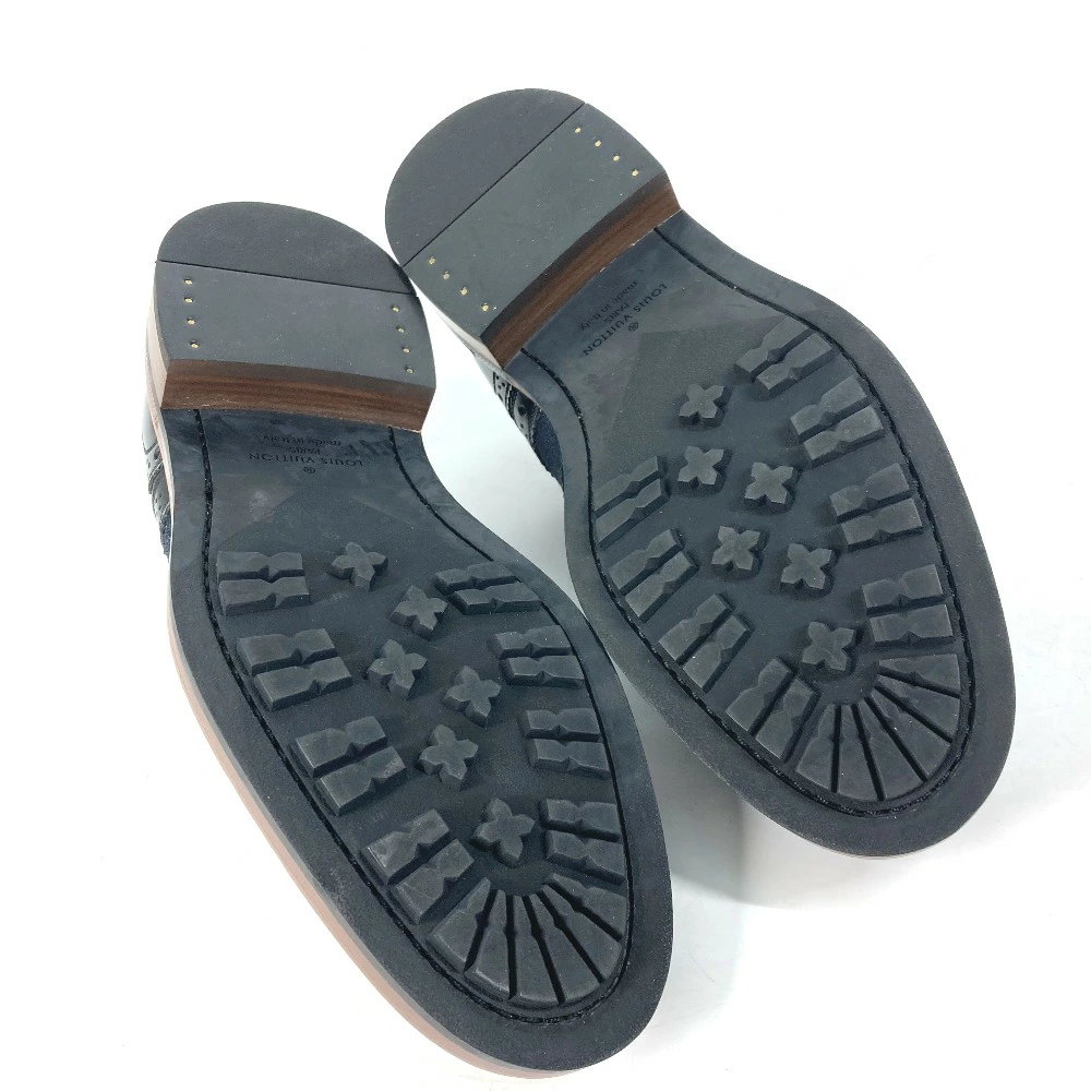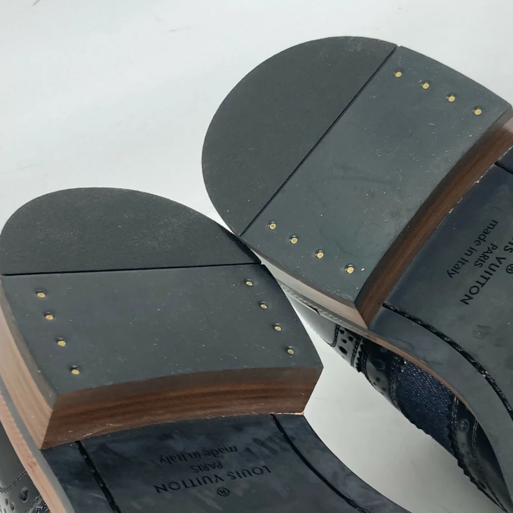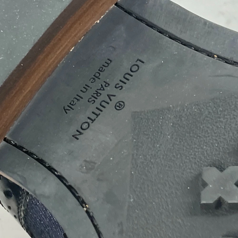 Pre-owned Louis Vuitton denim dress shoes, leather shoes, leather/denim, men's, navy.