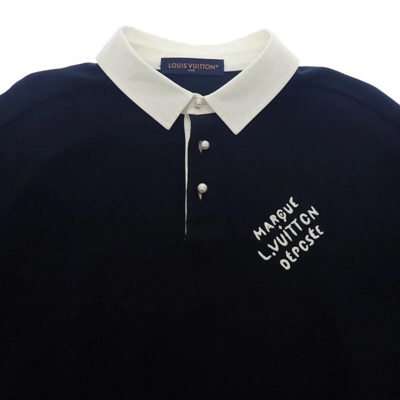 Pre-owned Louis Vuitton Embroidered Short Sleeve Polo Shirt, Size 1AHUJK, Men's, Black Cotton, Excellent Condition, Condition: AB