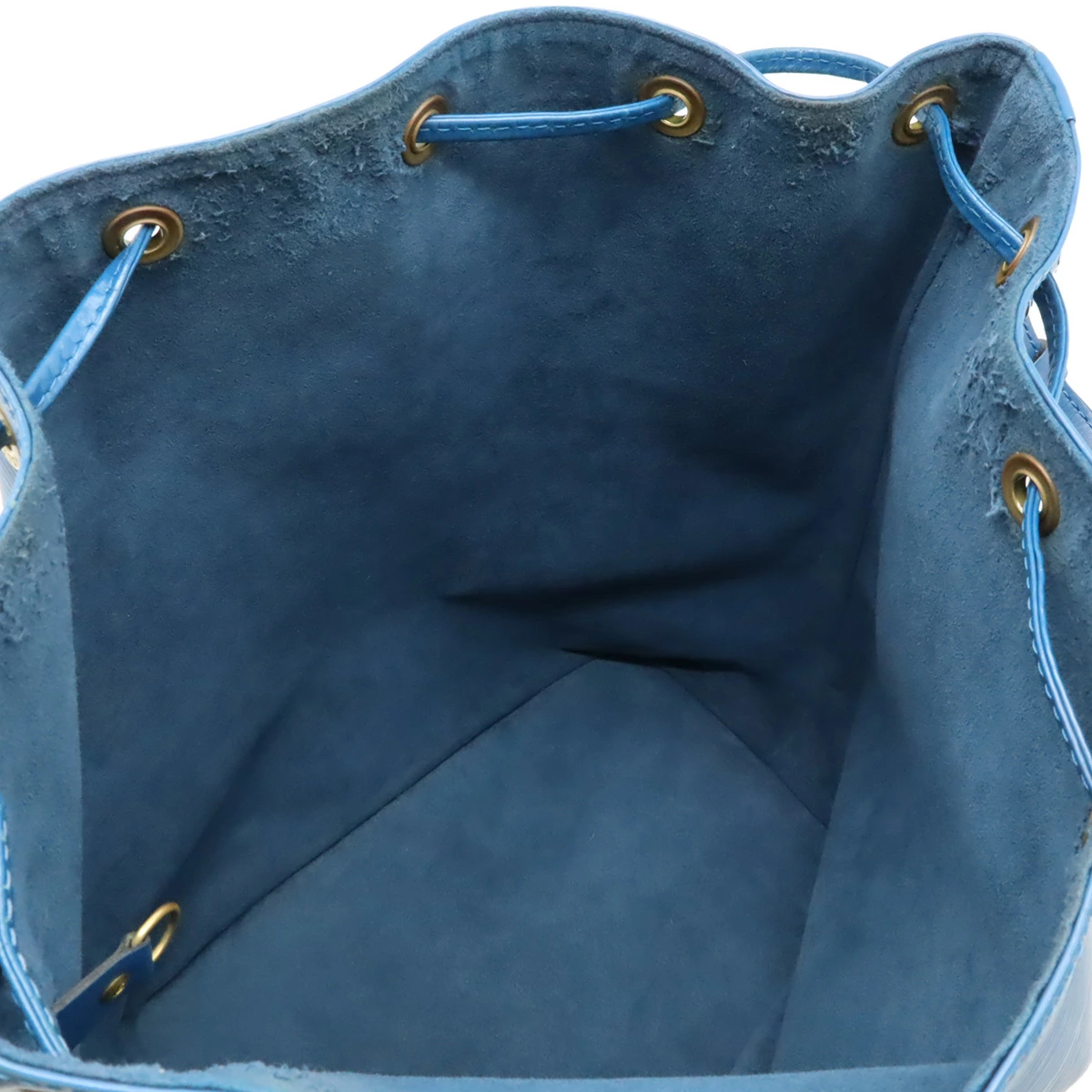 鮮やかなブルーのお色が目を引く、巾着型のオシャレなワンショルダーバッグでございます。