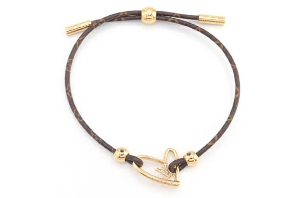 Pre-owned Louis Vuitton Fall in Love Bracelet M8024 in Monogram Canvas and Gold Metal. This Monogram bracelet features a heart design and is perfect for women.