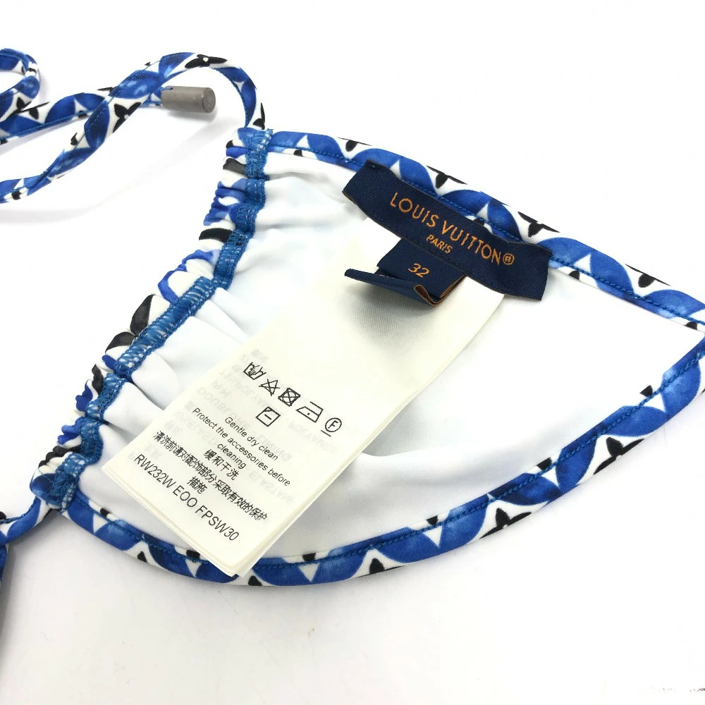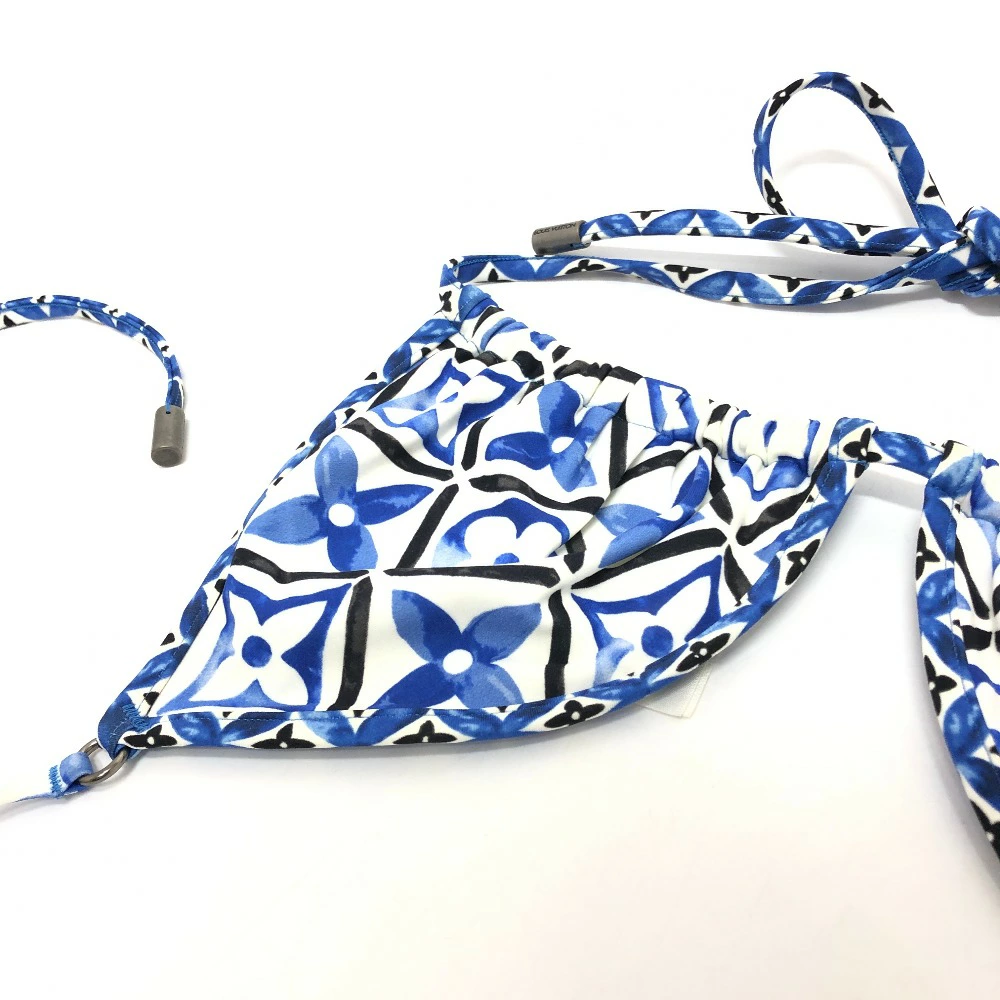 | 商品説明 | メゾンの定番アイテムを、LVバイザプールならではのフレッシュかつ夏らしいシグネチャー・パターンで再解釈した、トライアングル型のビキニ。 |