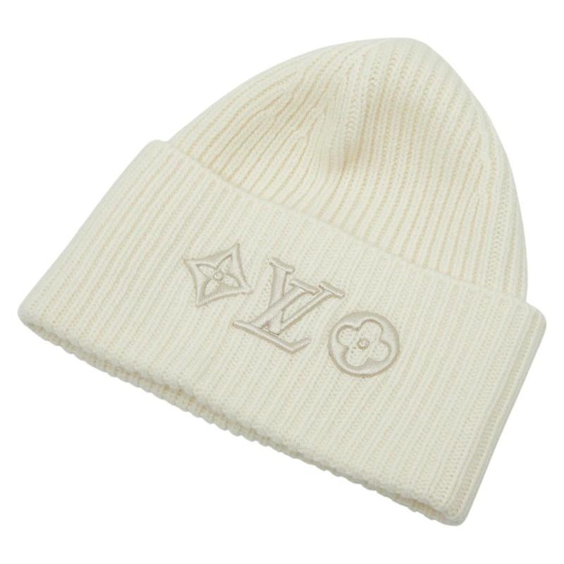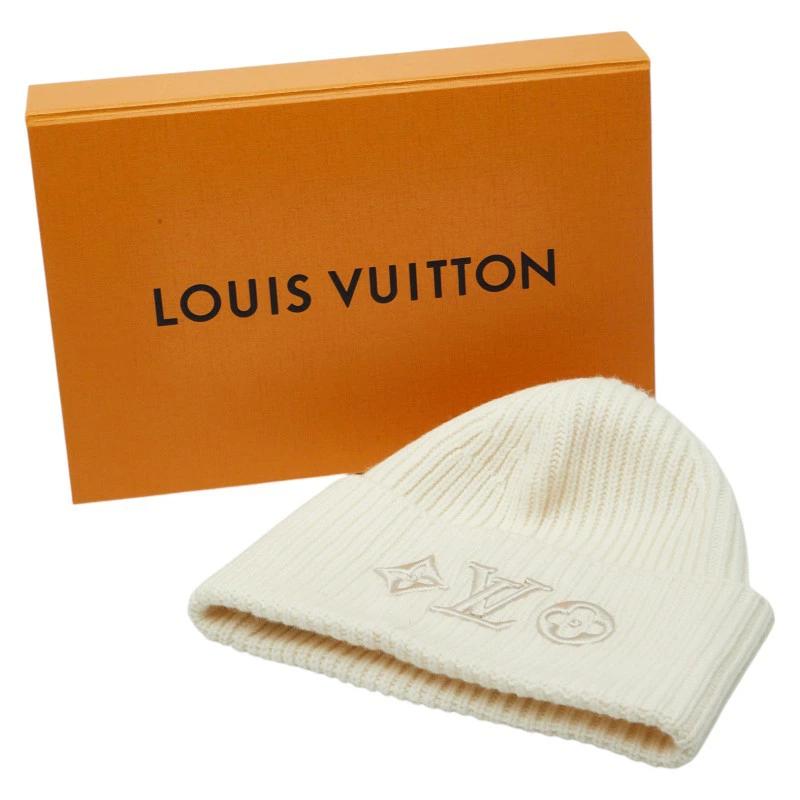 - ルイ ヴィトン ニットキャップ ニット帽 ビーニー サイズ:S M77873 ブロン ホワイト ウール レディース LOUIS VUITTON 【中古】