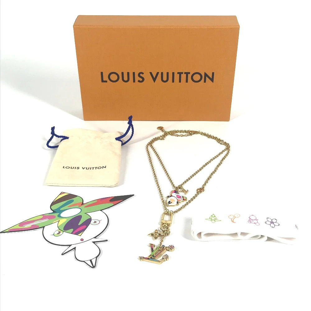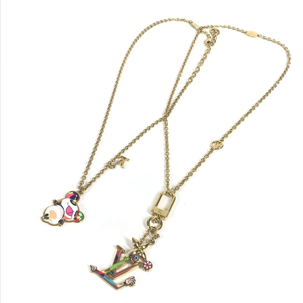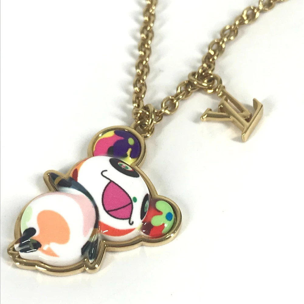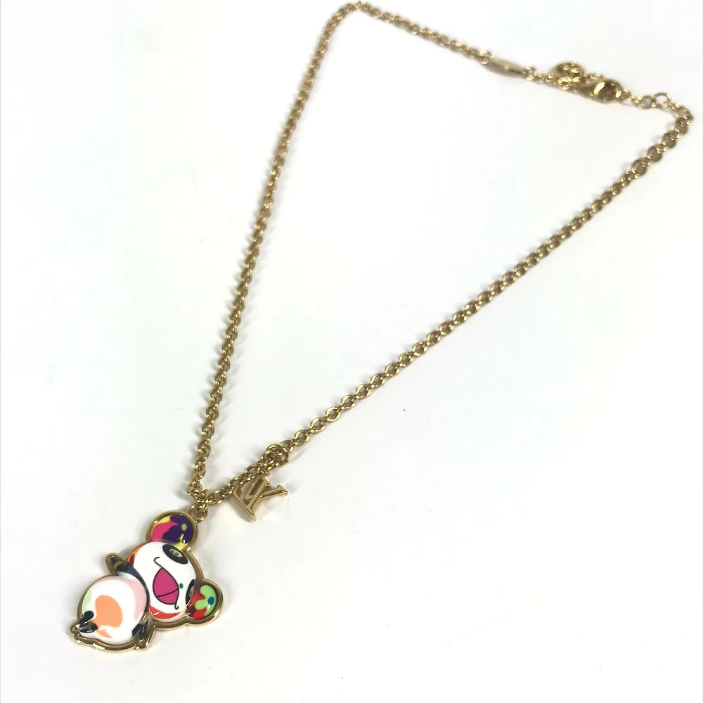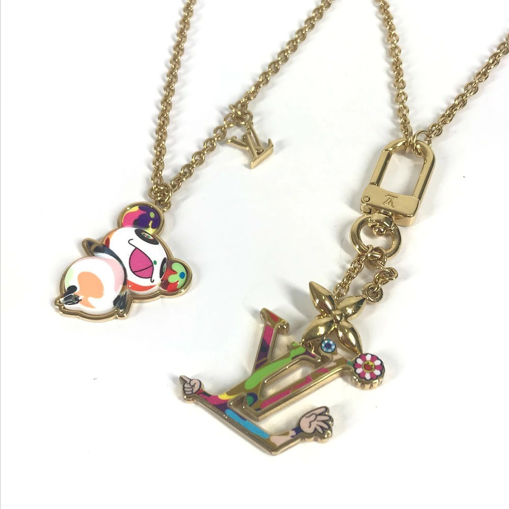 Pre-owned Louis Vuitton M02499 LV x TM Takashi Murakami Panda Set of 2 Superflat Chain Necklaces, Unisex, Gold.