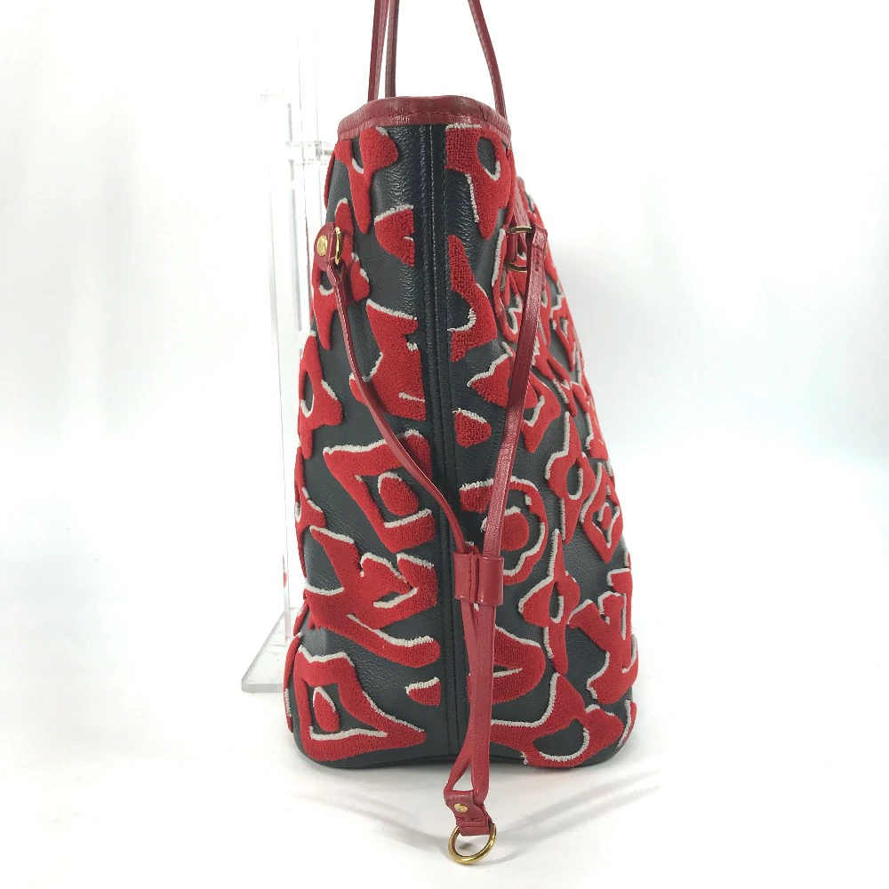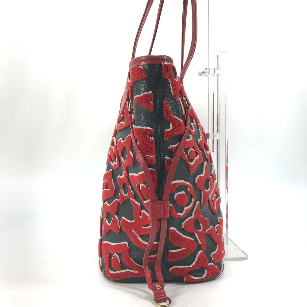 Pre-owned Louis Vuitton M45544 LVxUF Urs Fischer Neverfull MM Shoulder Bag with Pouch, Monogram Tufted Canvas Tote Bag, Women's, Red.