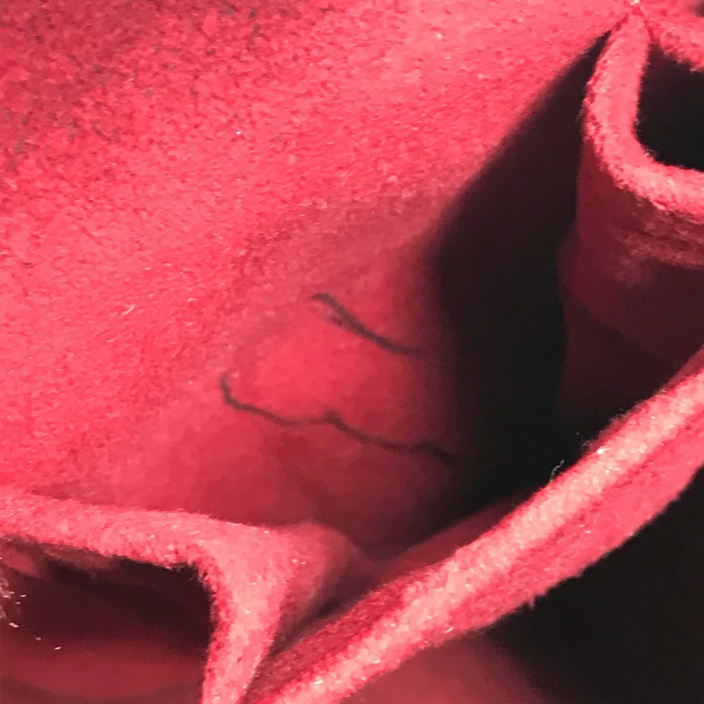 外側キズ、汚れ、擦れ、ヌメ革に焼け、ヌメ革に染み