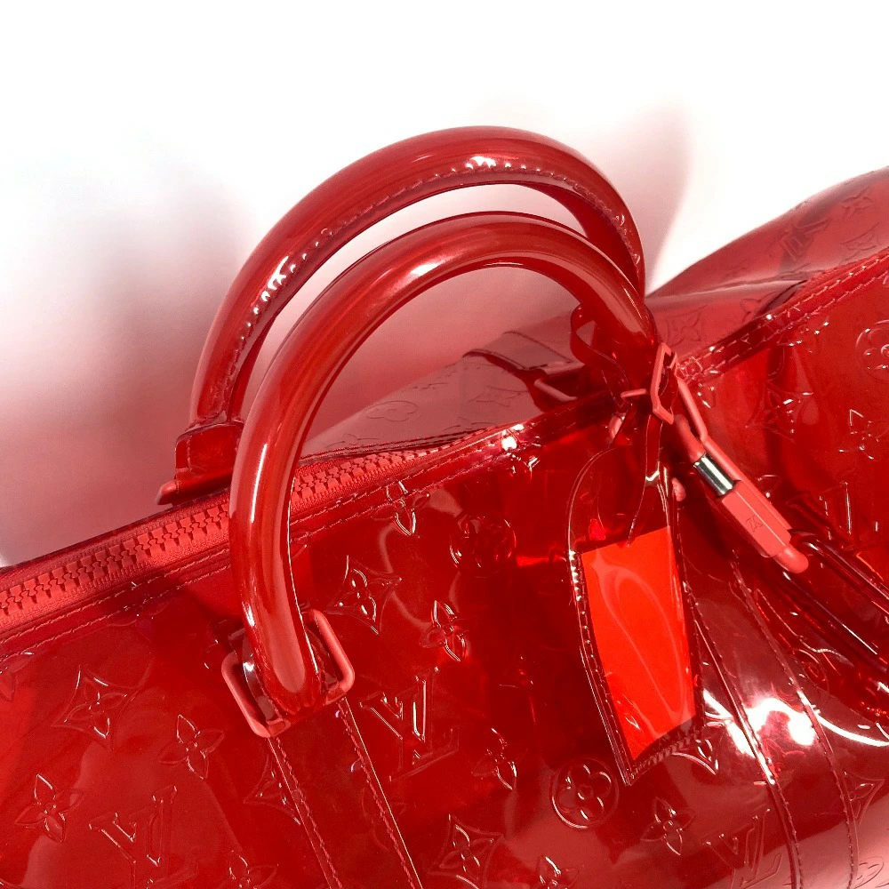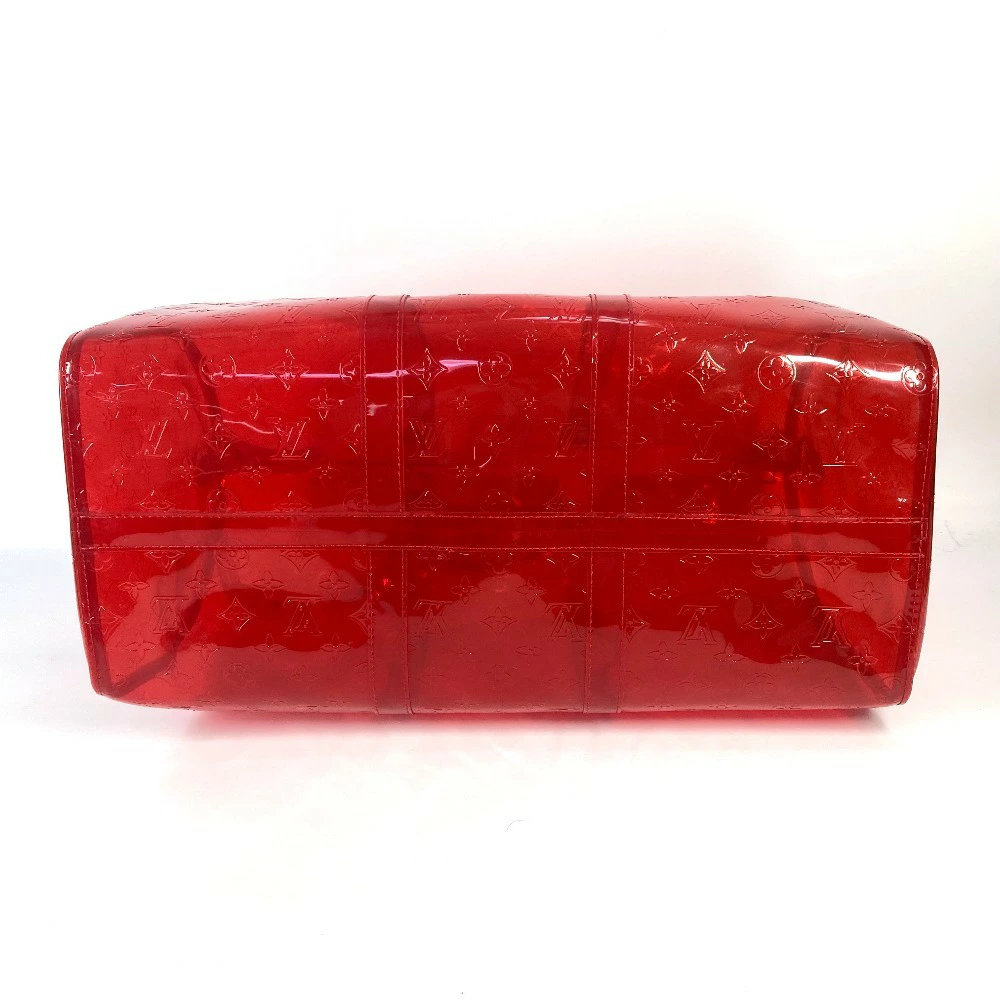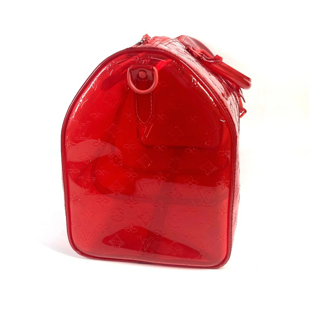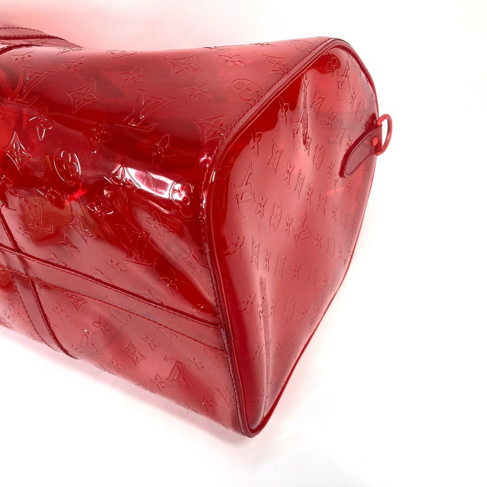 Pre-owned Louis Vuitton M53274 Monogram Prism Clear Keepall Bandouliere 50 Travel Bag, Shoulder Bag, Boston Bag, Vinyl, Unisex, Red