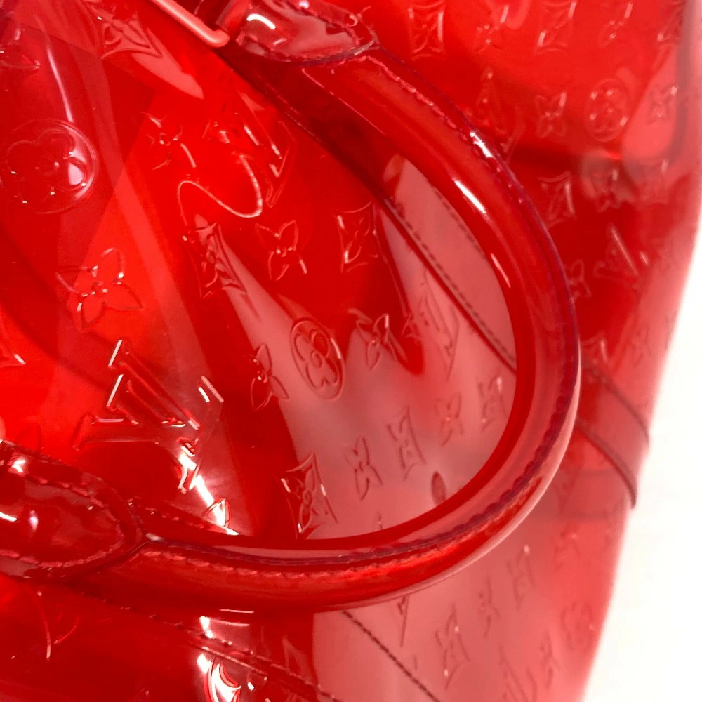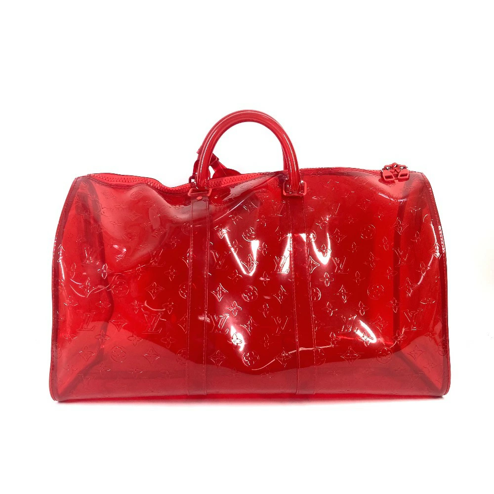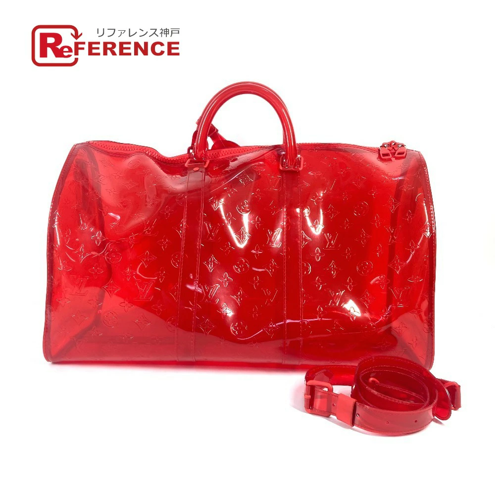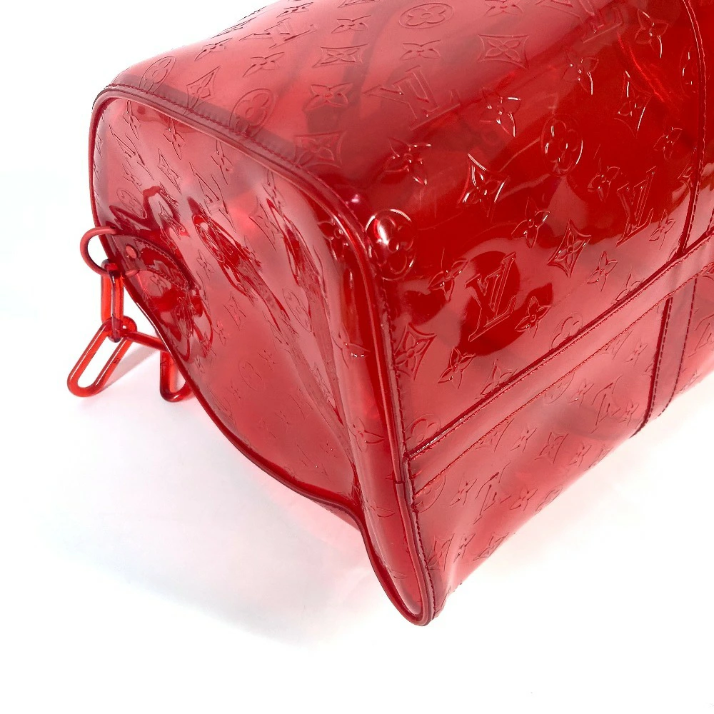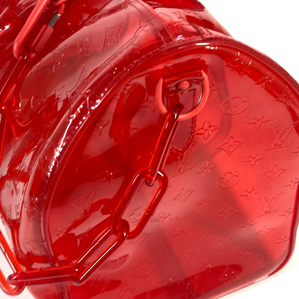 Pre-owned Louis Vuitton M53274 Monogram Prism Clear Keepall Bandouliere 50 Travel Bag, Shoulder Bag, Boston Bag, Vinyl, Unisex, Red