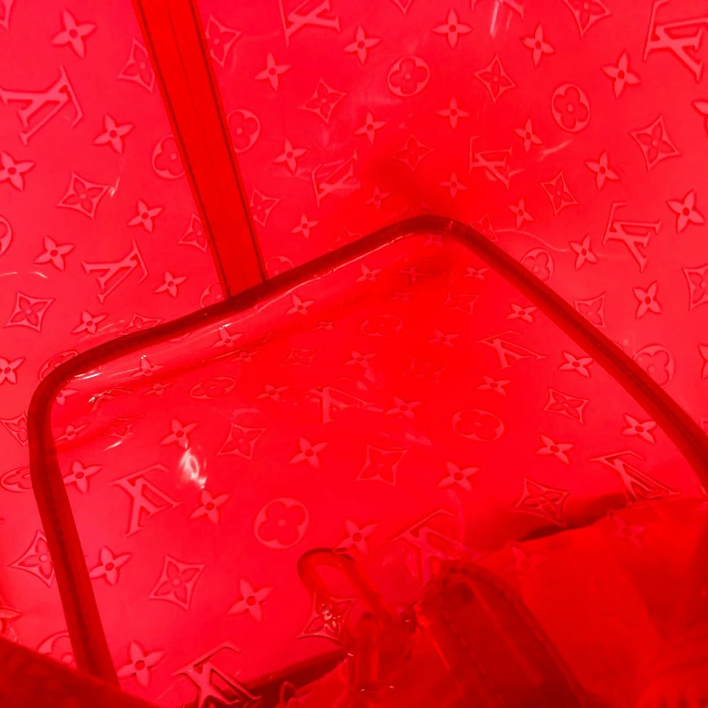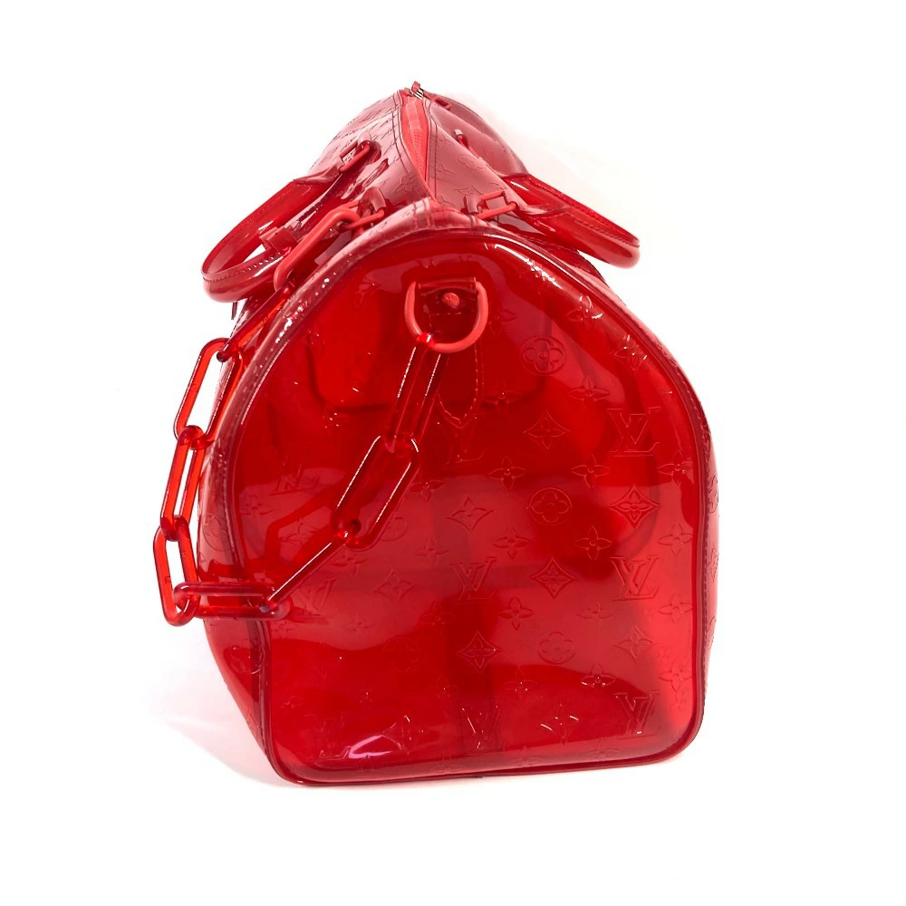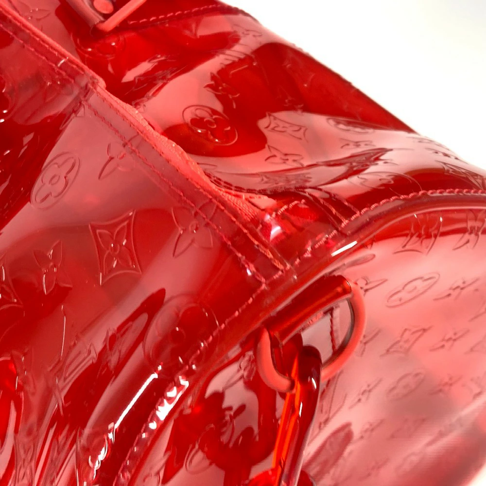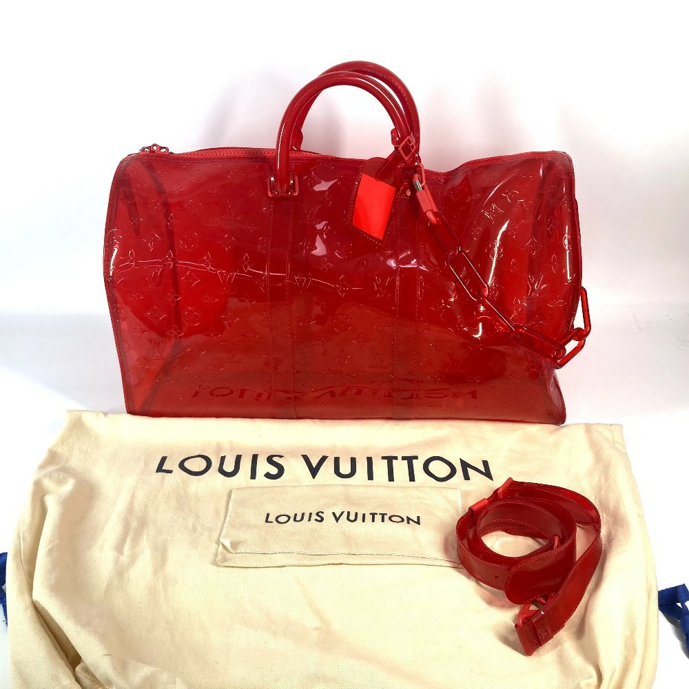 Pre-owned Louis Vuitton M53274 Monogram Prism Clear Keepall Bandouliere 50 Travel Bag, Shoulder Bag, Boston Bag, Vinyl, Unisex, Red