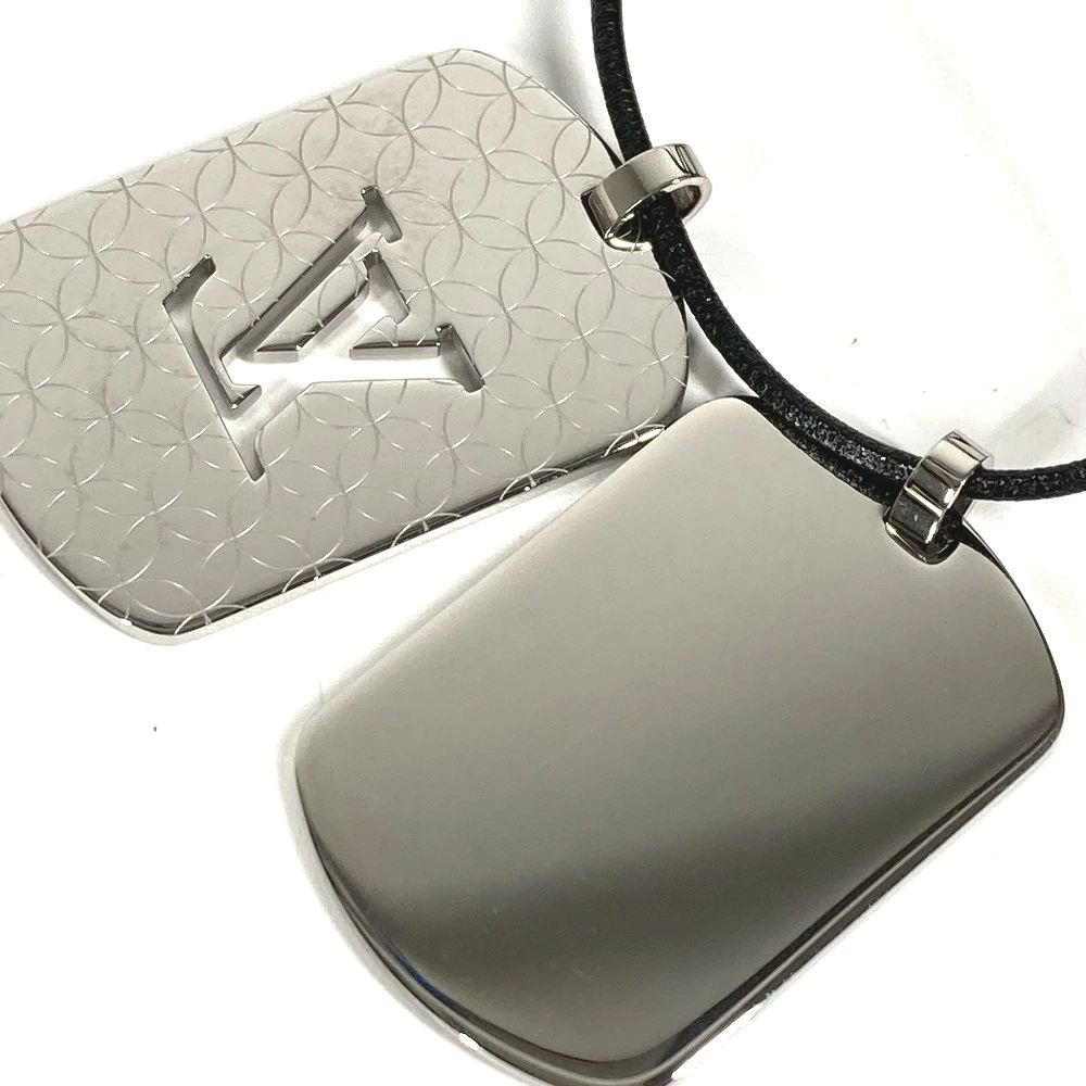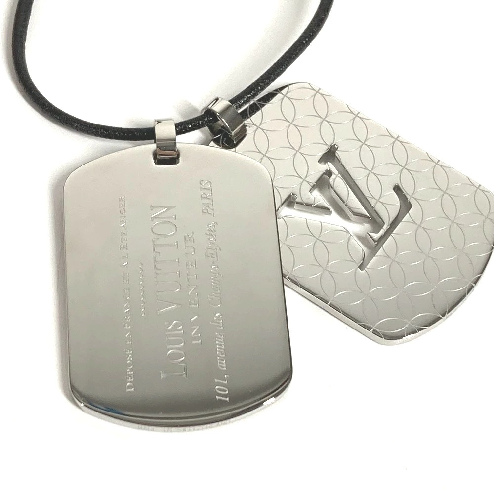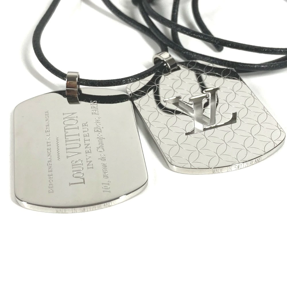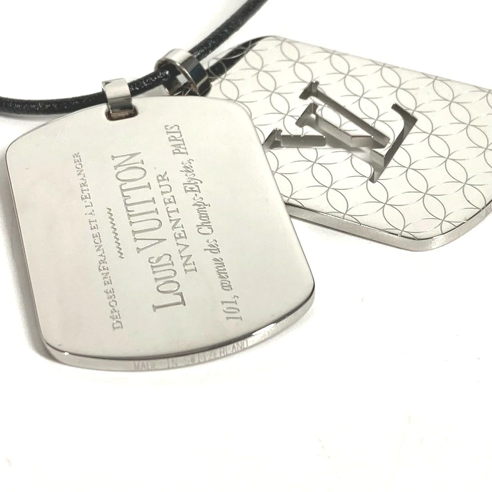 Pre-owned LOUIS VUITTON M65453 Champs-Élysées GM Pendant Necklace with Stainless Steel/Leather Strap, Unisex, Silver, Like New
