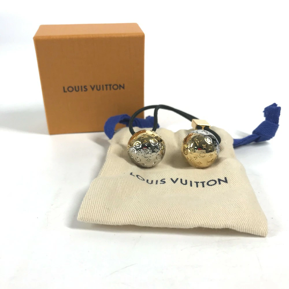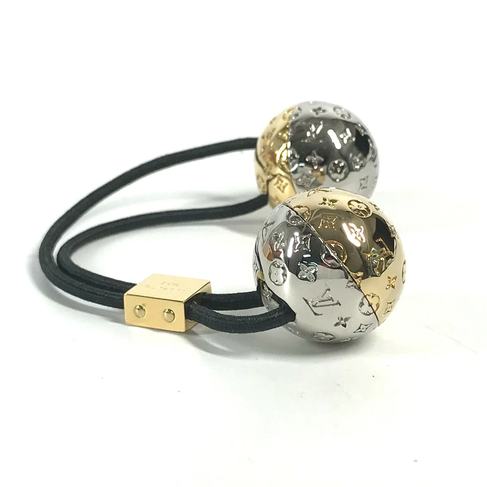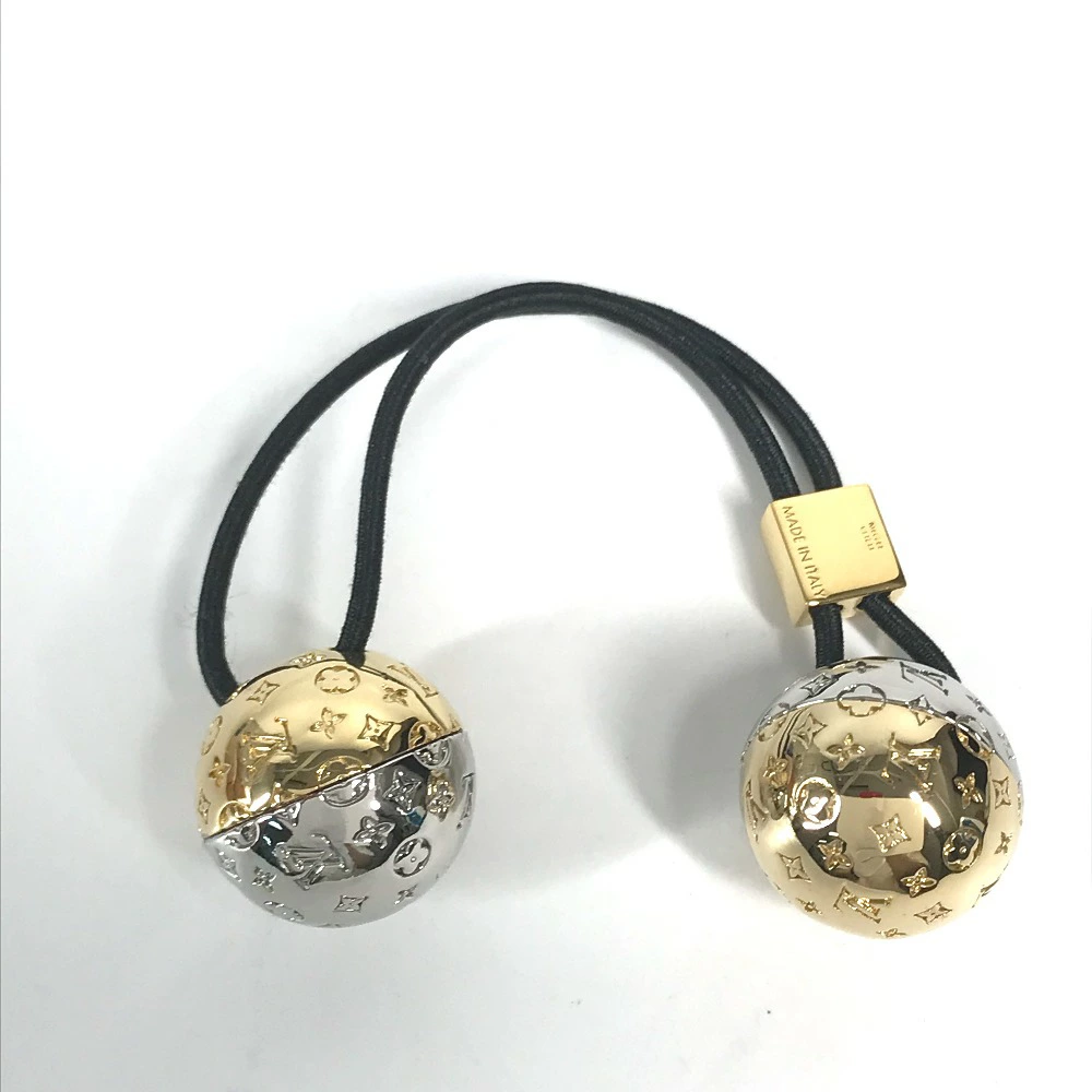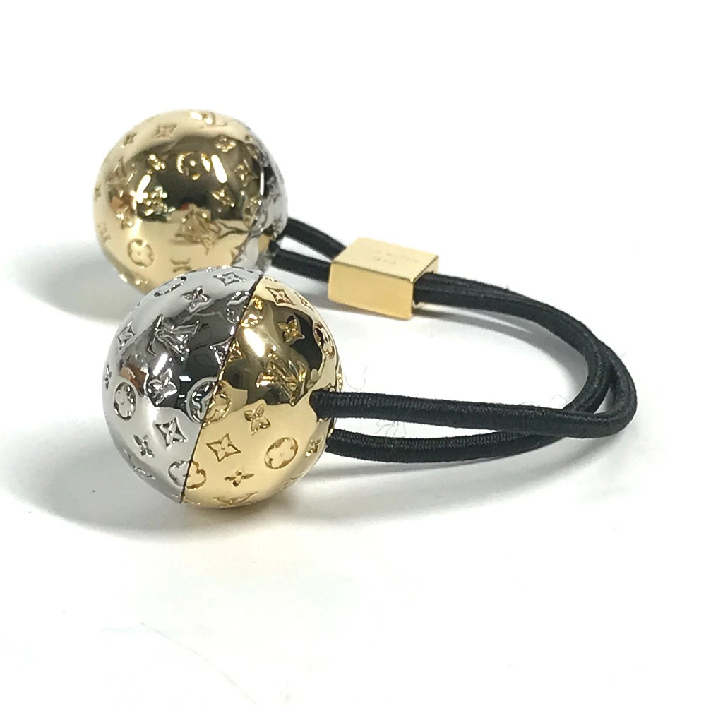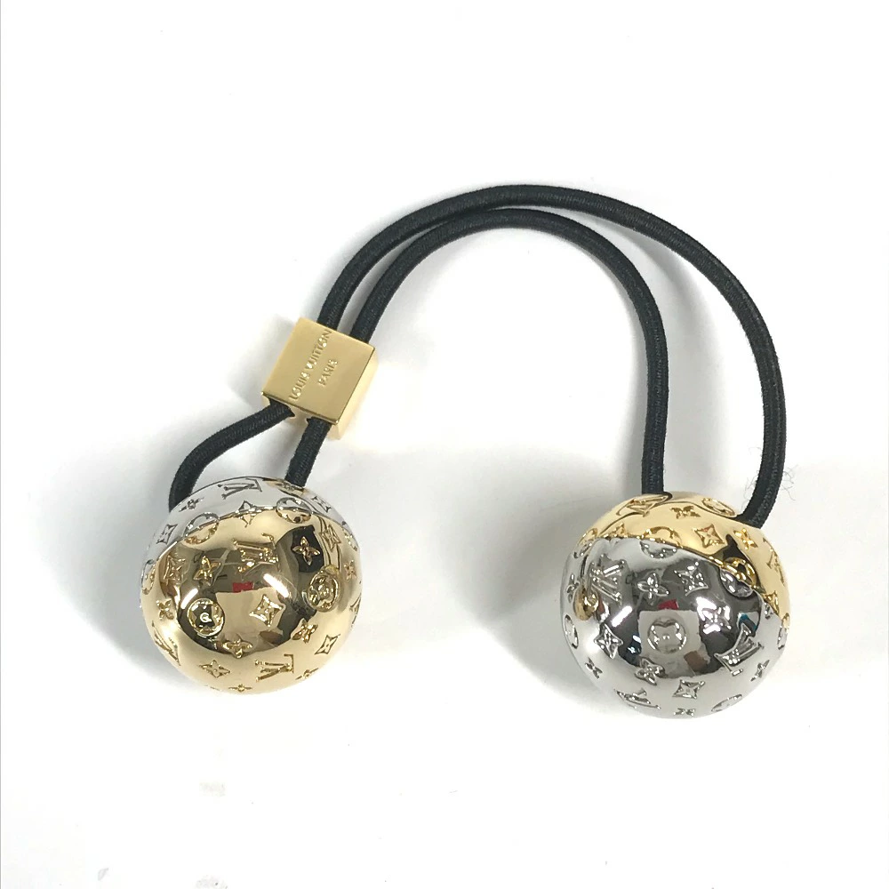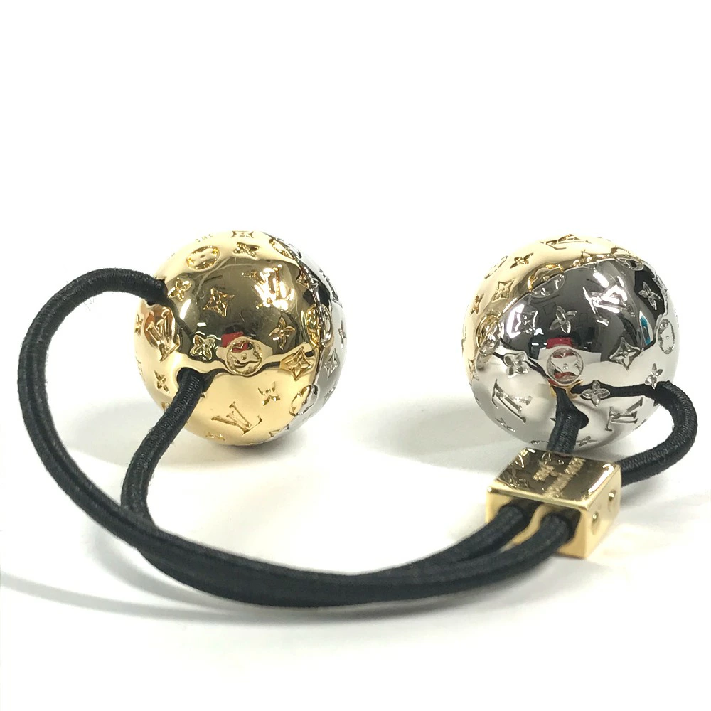 | 商品説明 | ヘアアクセサリーとしてお楽しみいただける「シュシュ・ナノグラム プラネット LV」。2つの艶やかで装飾的な球体は、惑星から着想を得て、コントラストを描くメタルパーツで仕上げたもの。 |
