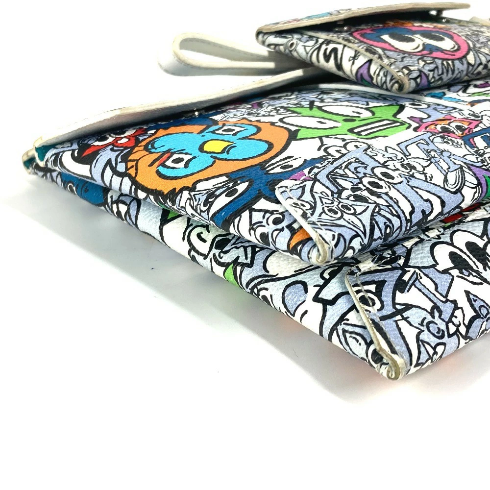 商品説明メンズ、レディース問わずお使いいただけるモノグラムコミックのトリオアンヴェロップ。