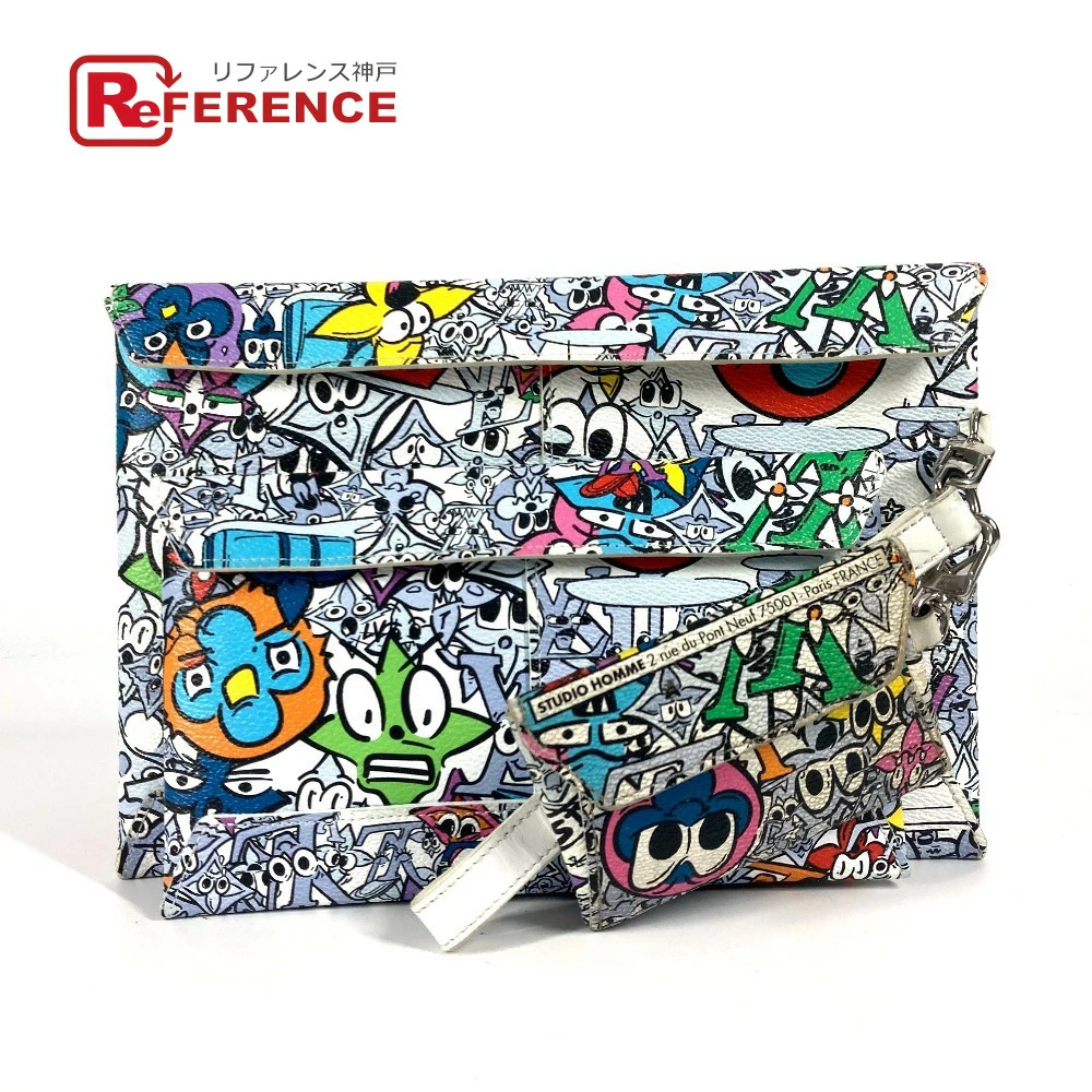 Pre-owned Louis Vuitton M82014 Monogram Comic Trio Envelope Pouch, Second Bag with Strap, Card Case, and Clutch Bag in Leather/Canvas, Unisex, Multicolore