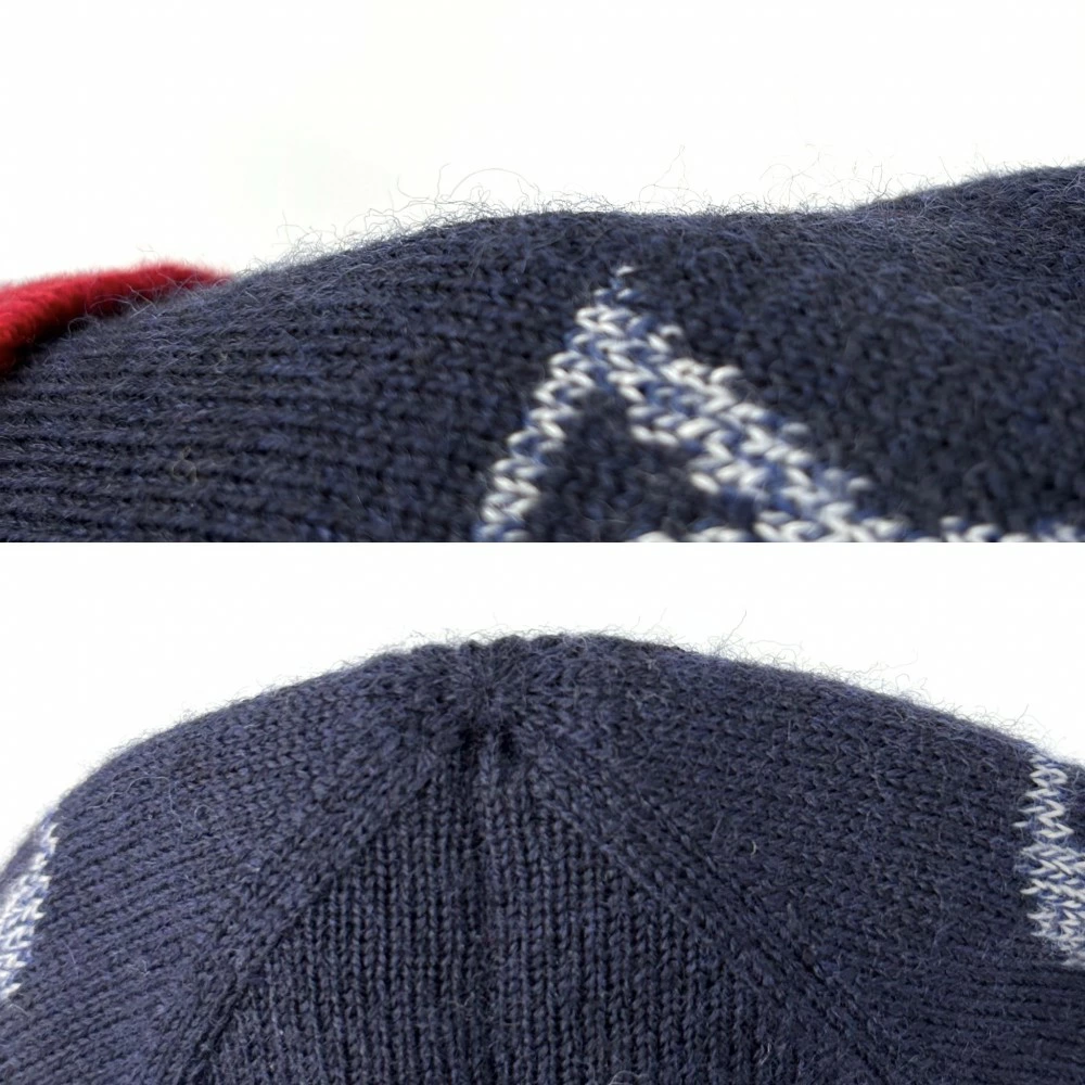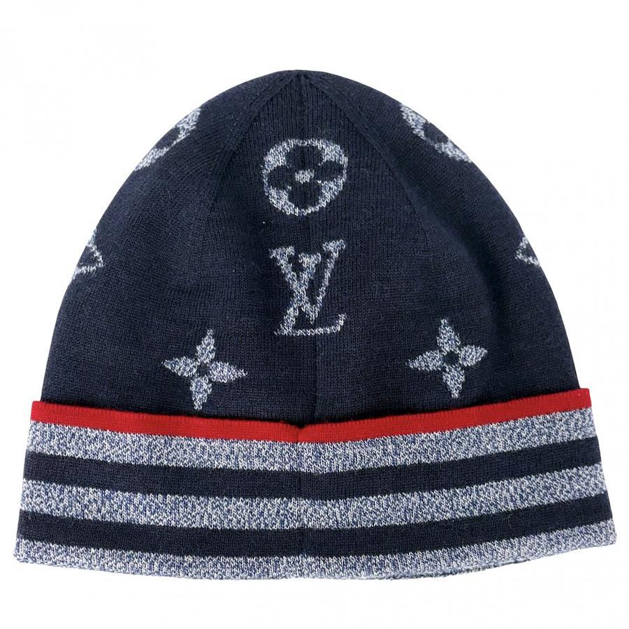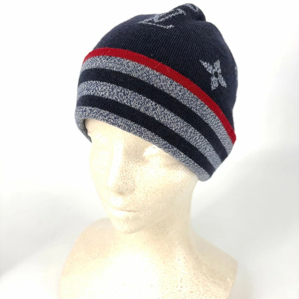 Pre-owned Louis Vuitton Men's Bonnet Monogram Striped Knit Cap, M76027, Wool, Navy Blue and Red, Fall/Winter, Excellent Condition