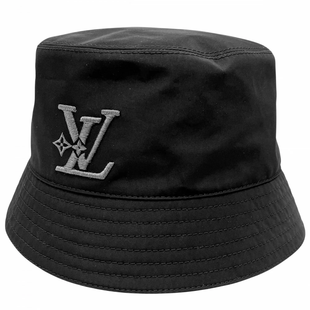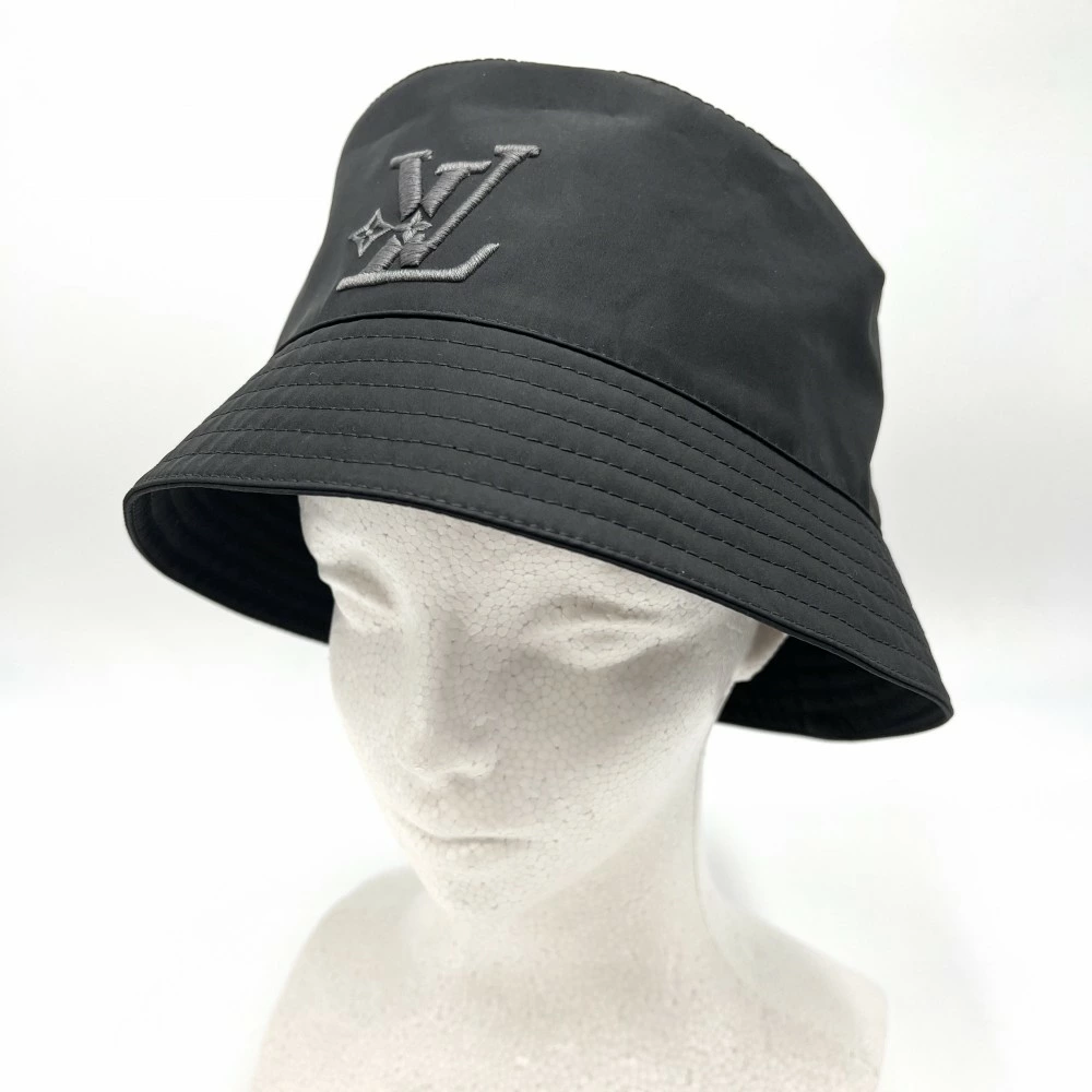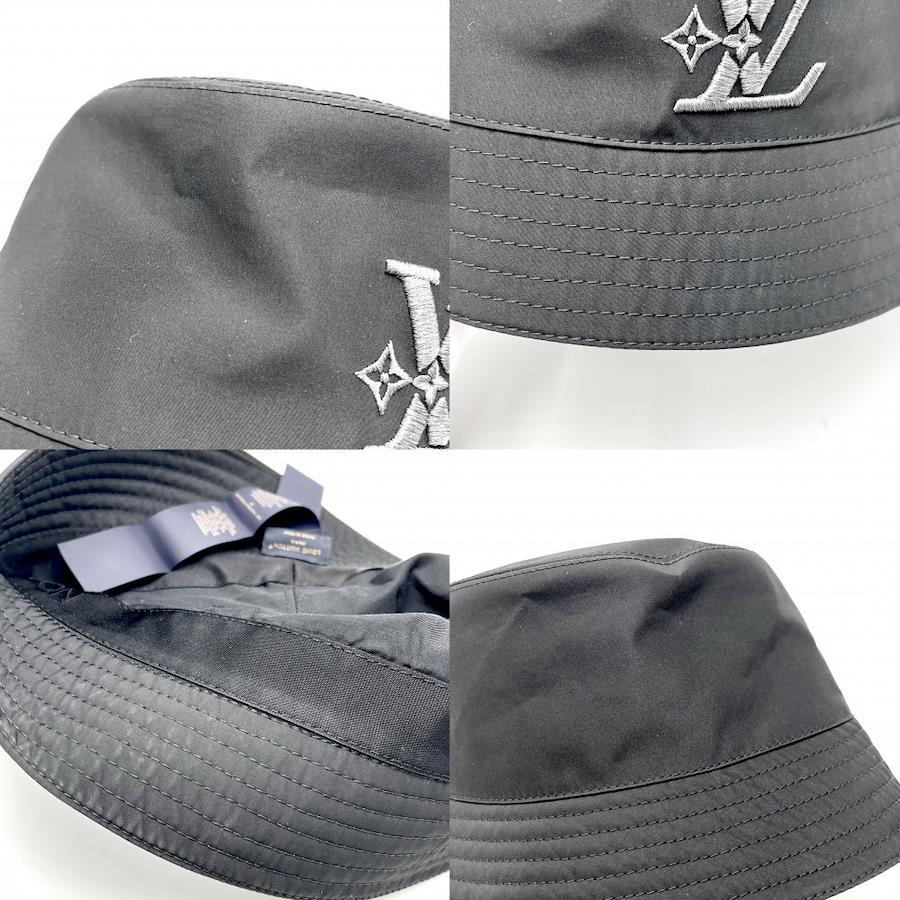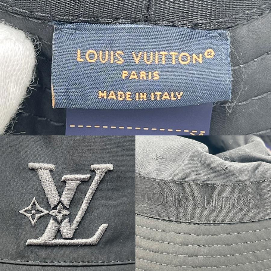Pre-owned Louis Vuitton Men's Logo Embroidered Bucket Hat - LV Smash Rain, Size M, Polyester/Polyurethane, Black, Excellent Condition.