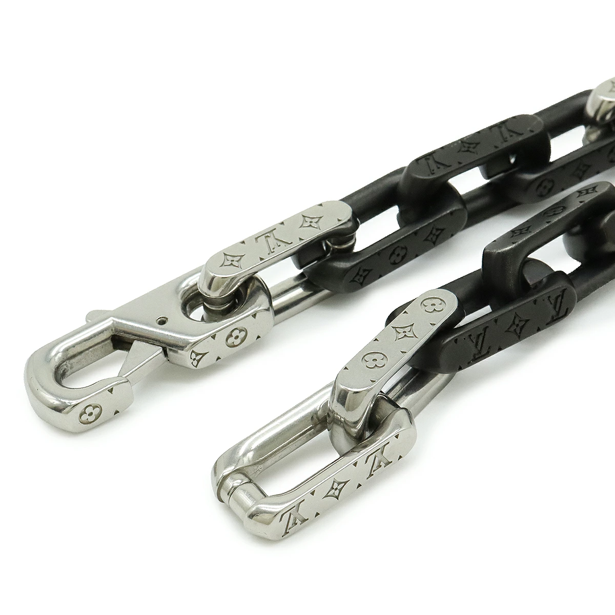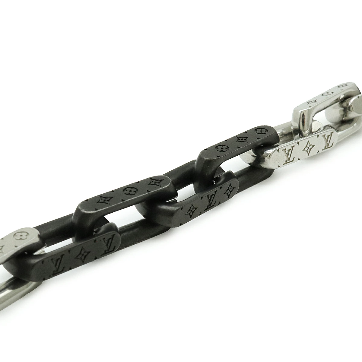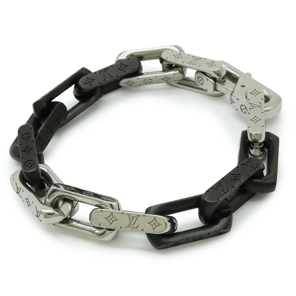 Pre-owned Louis Vuitton Monogram Chain Bracelet in Stainless Steel with Silver and Black Handles, Size M (M00686)