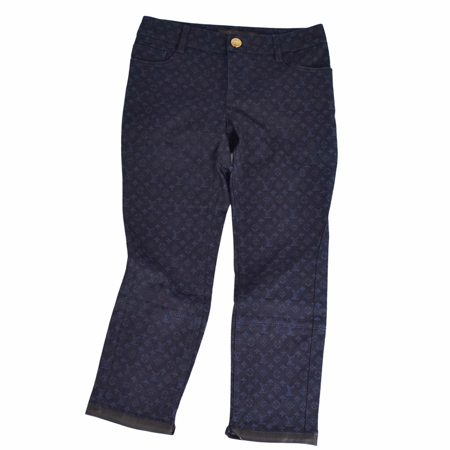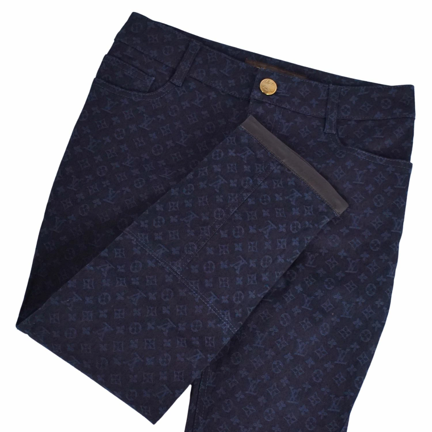 Pre-owned Louis Vuitton Monogram Cotton Denim Pants in Navy, Made in Italy, Size 36 (equivalent to S). Excellent Condition.