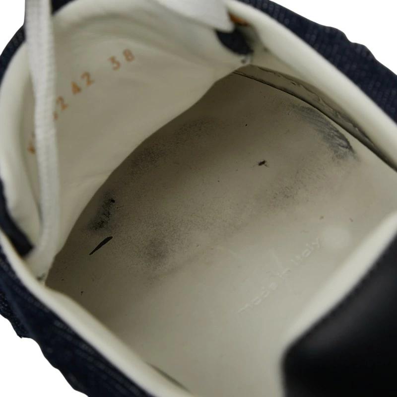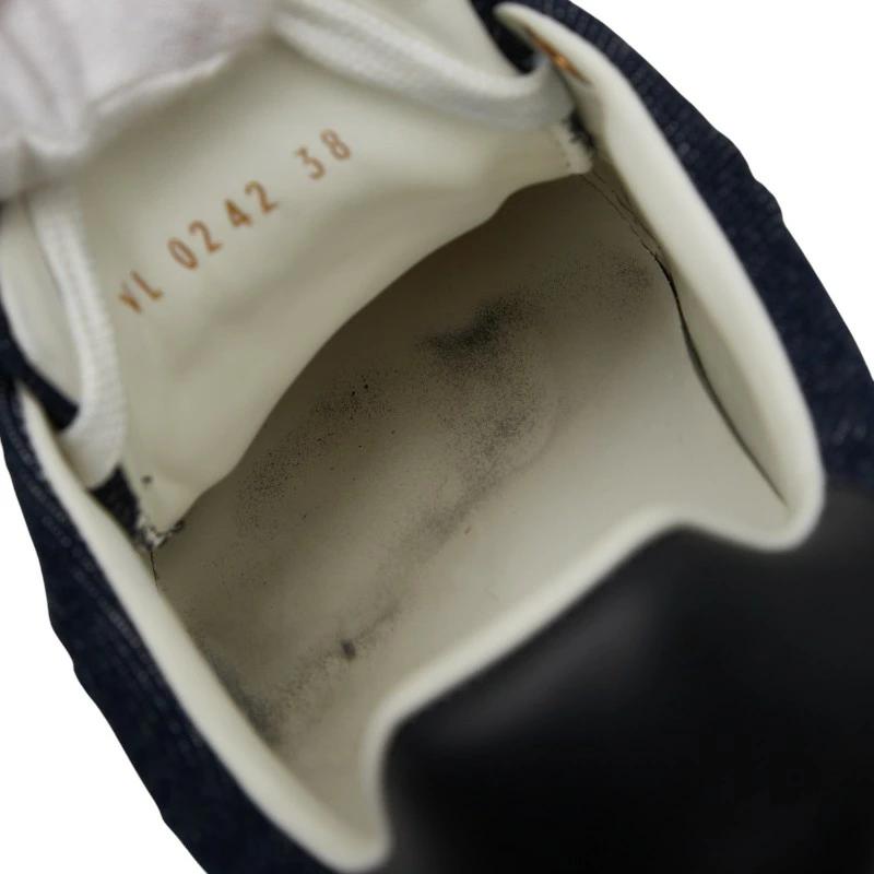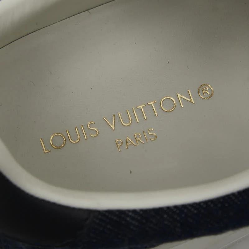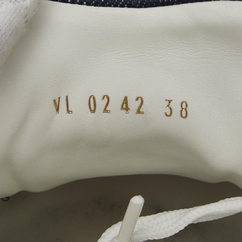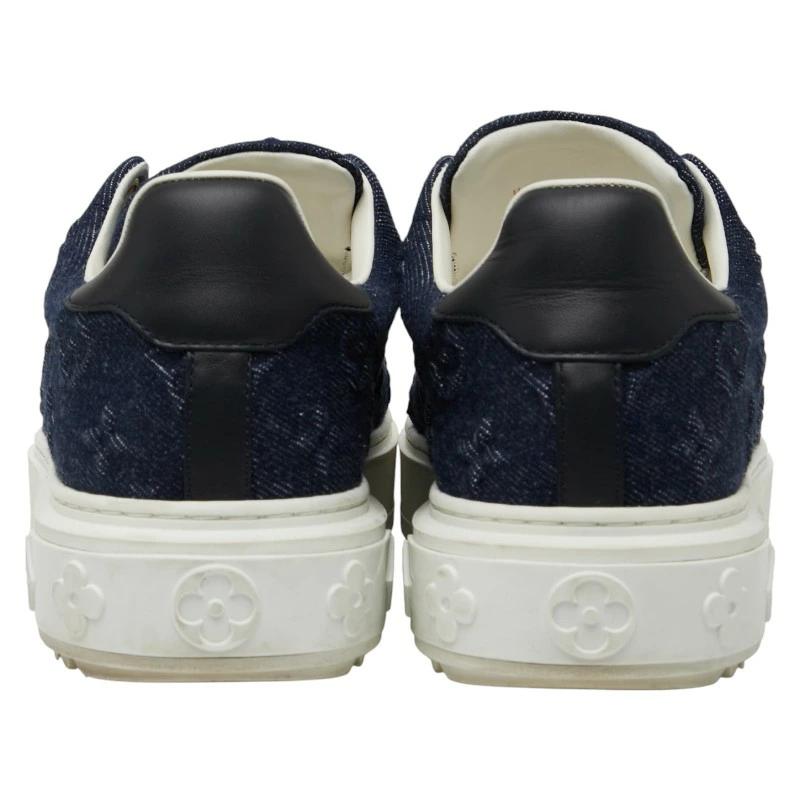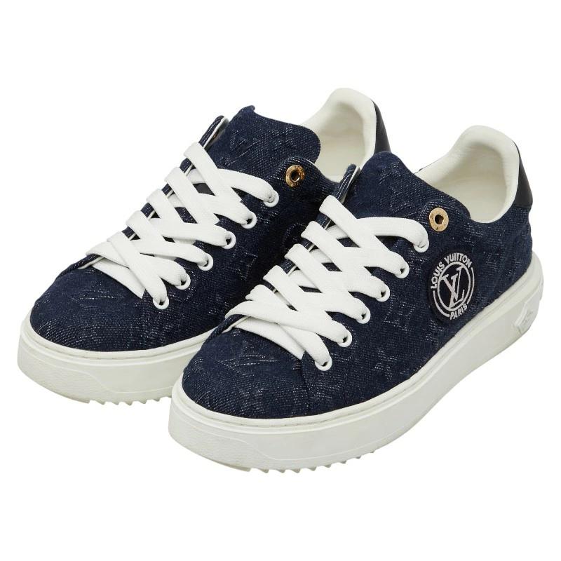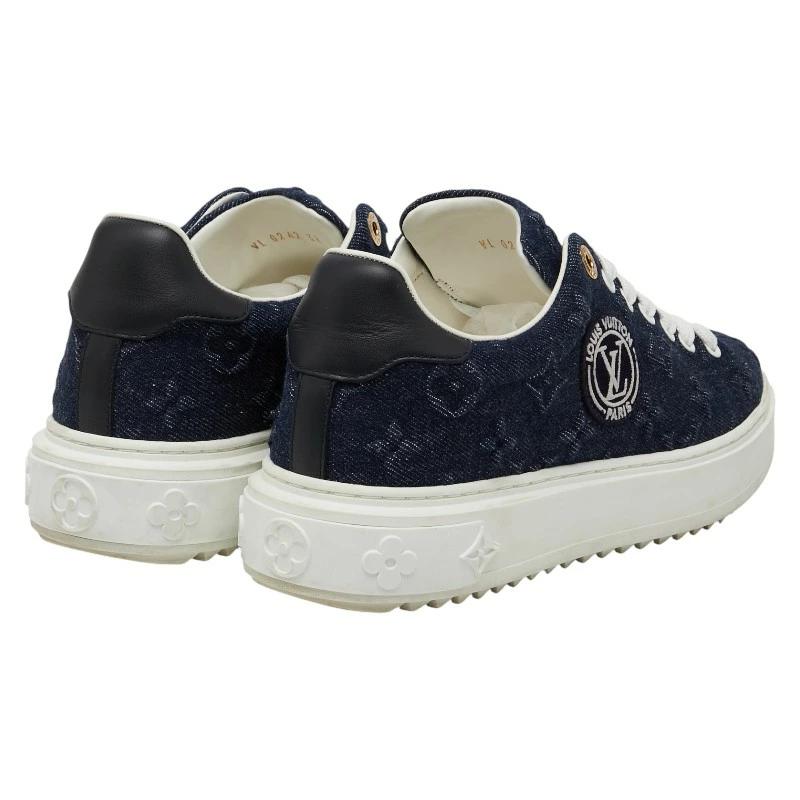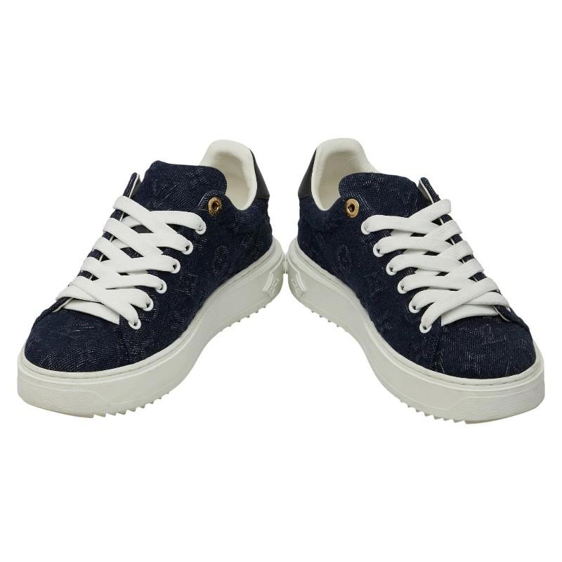 Pre-owned Louis Vuitton Monogram Denim Timeout Line Sneakers, Size 38, VL0242, Navy and White Denim Leather, Women's.