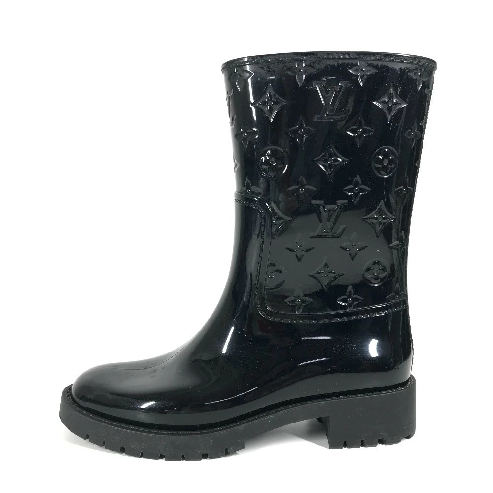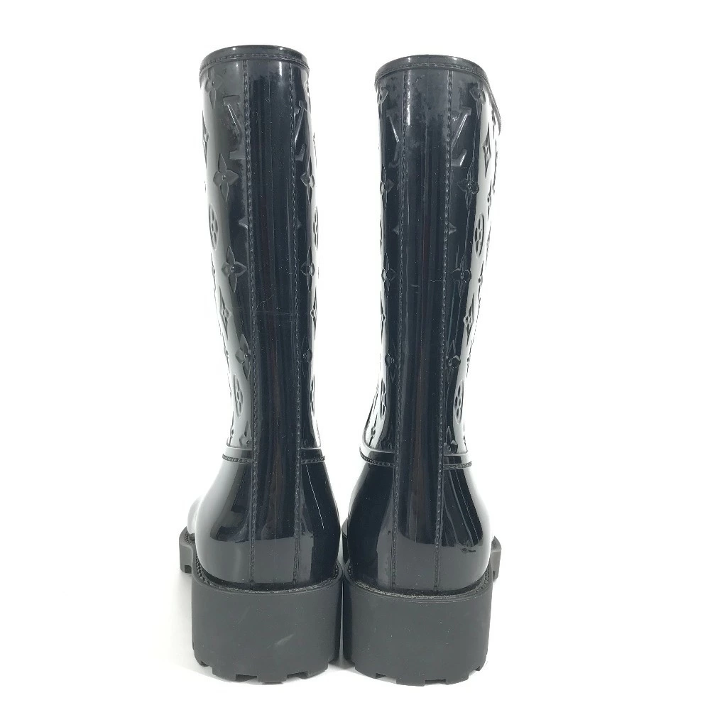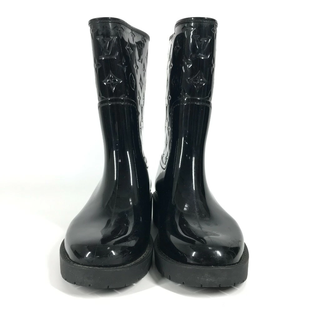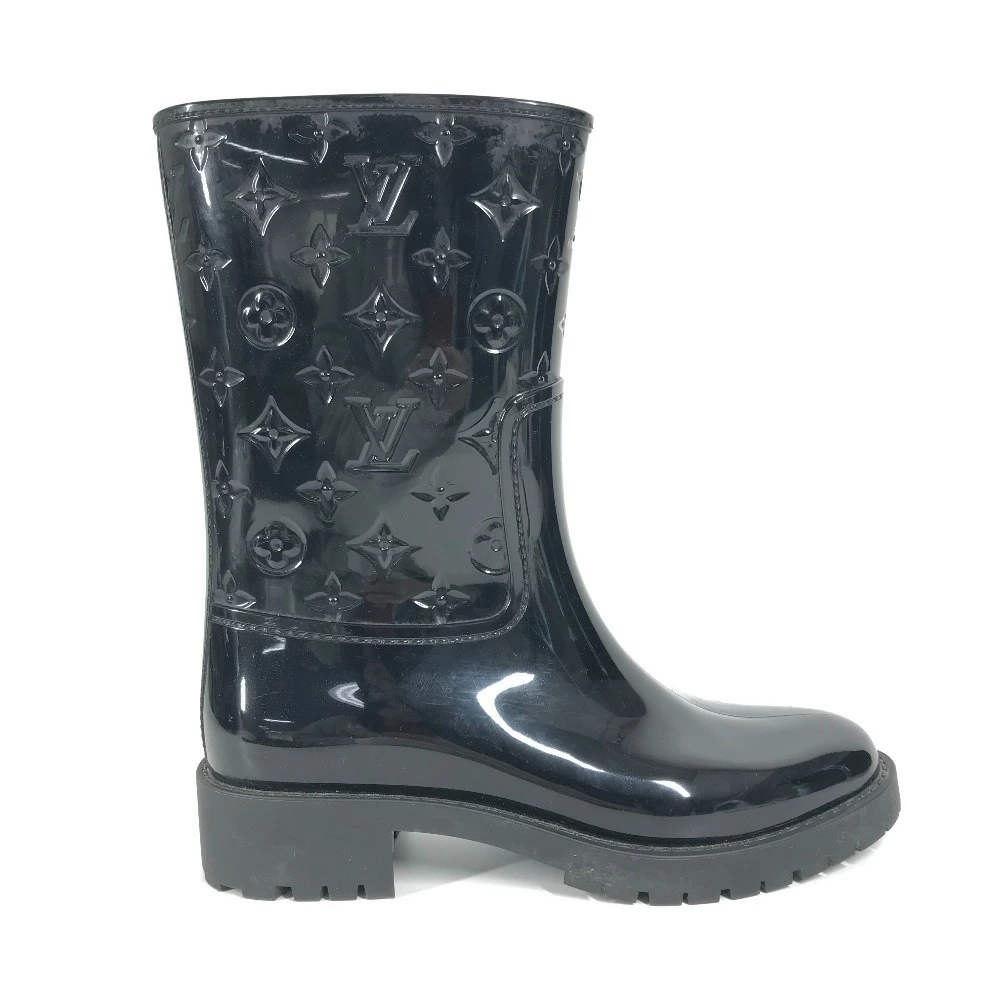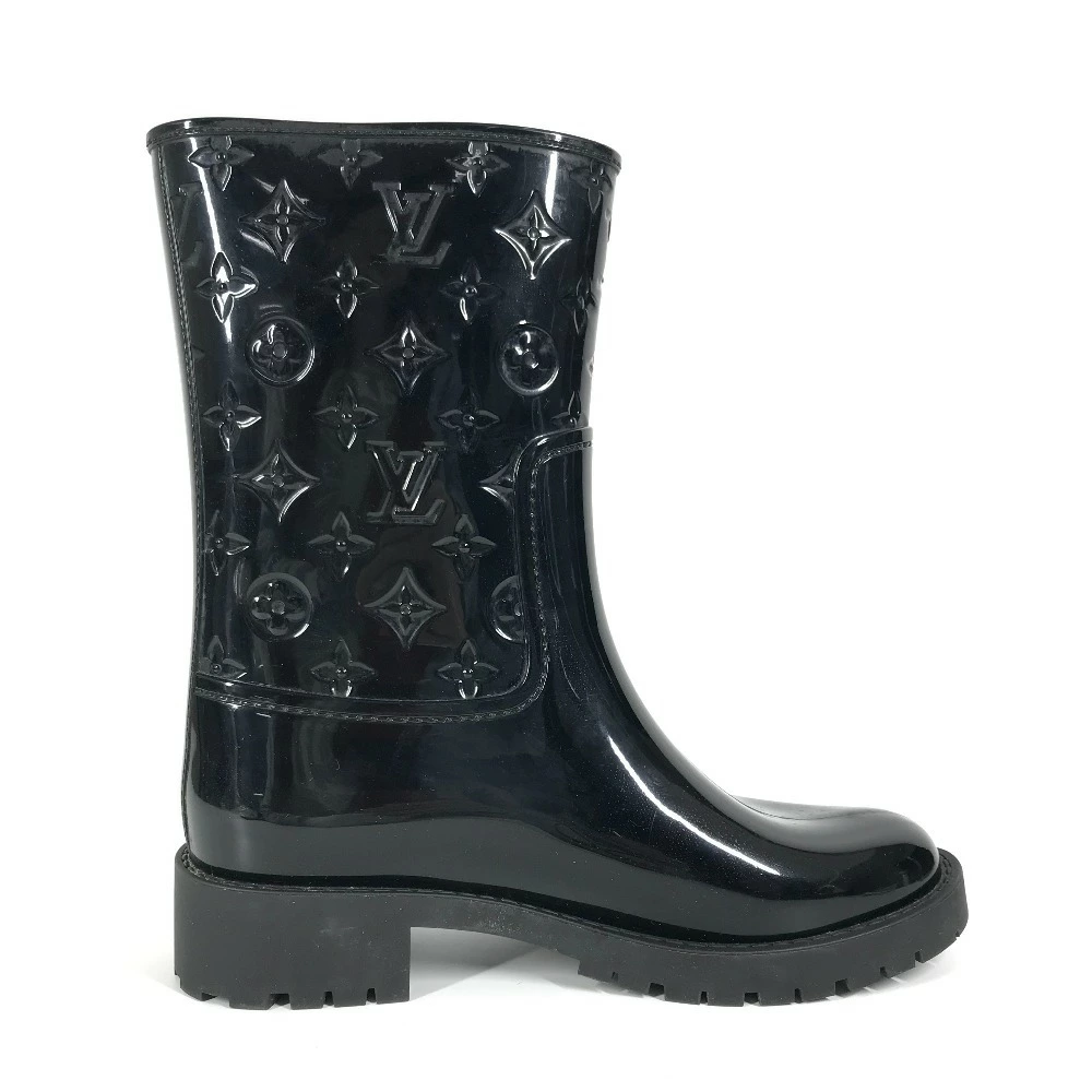 Pre-owned Louis Vuitton Monogram Drops Line Rain Boots, Women's Rubber, Black.