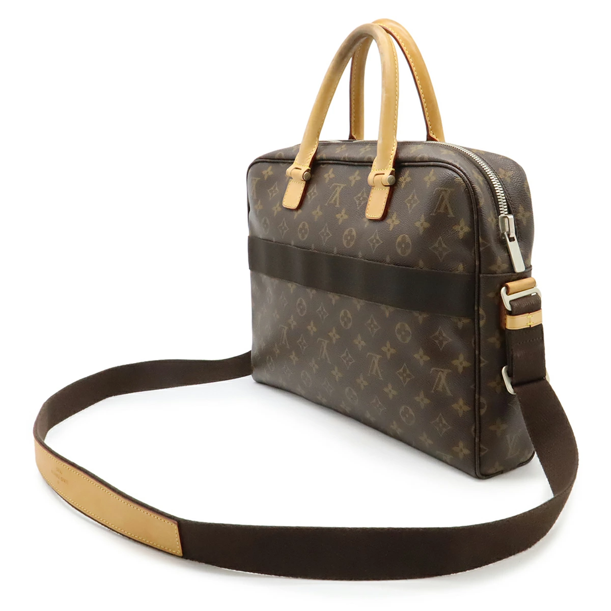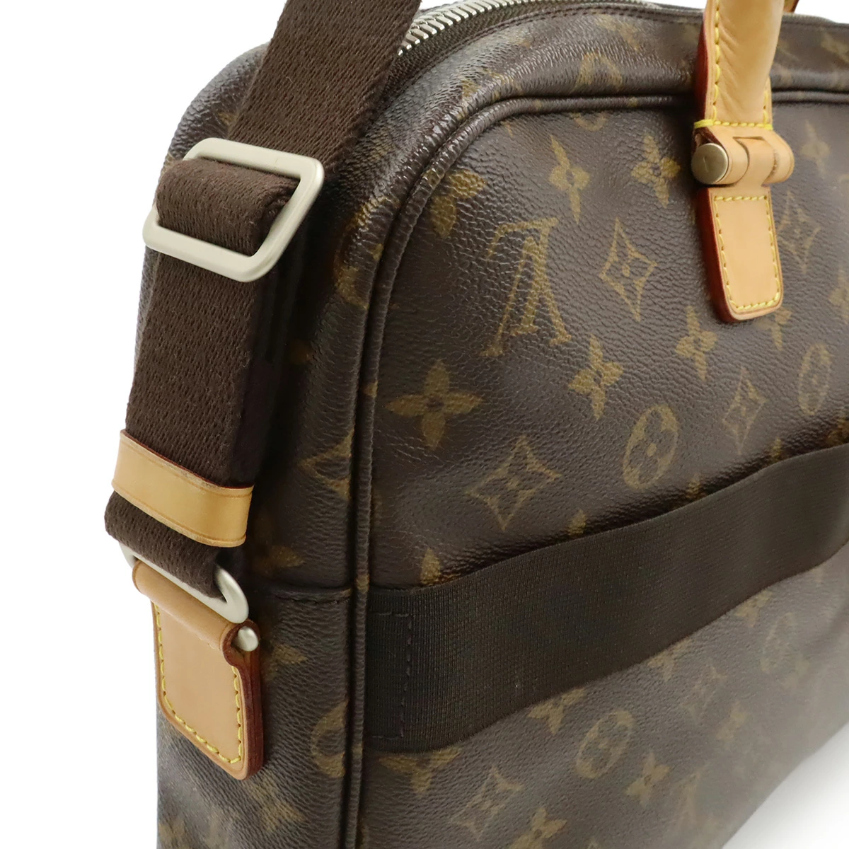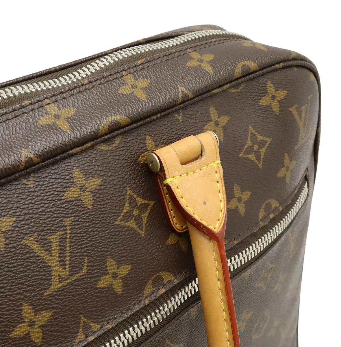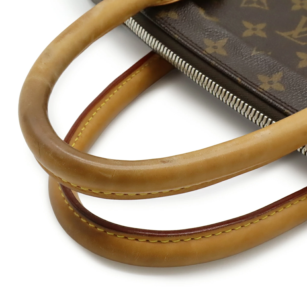 ハンドル跡、背面ゴム伸び、ヌメ革ヤケ、薄シミ、フチ薄スレ