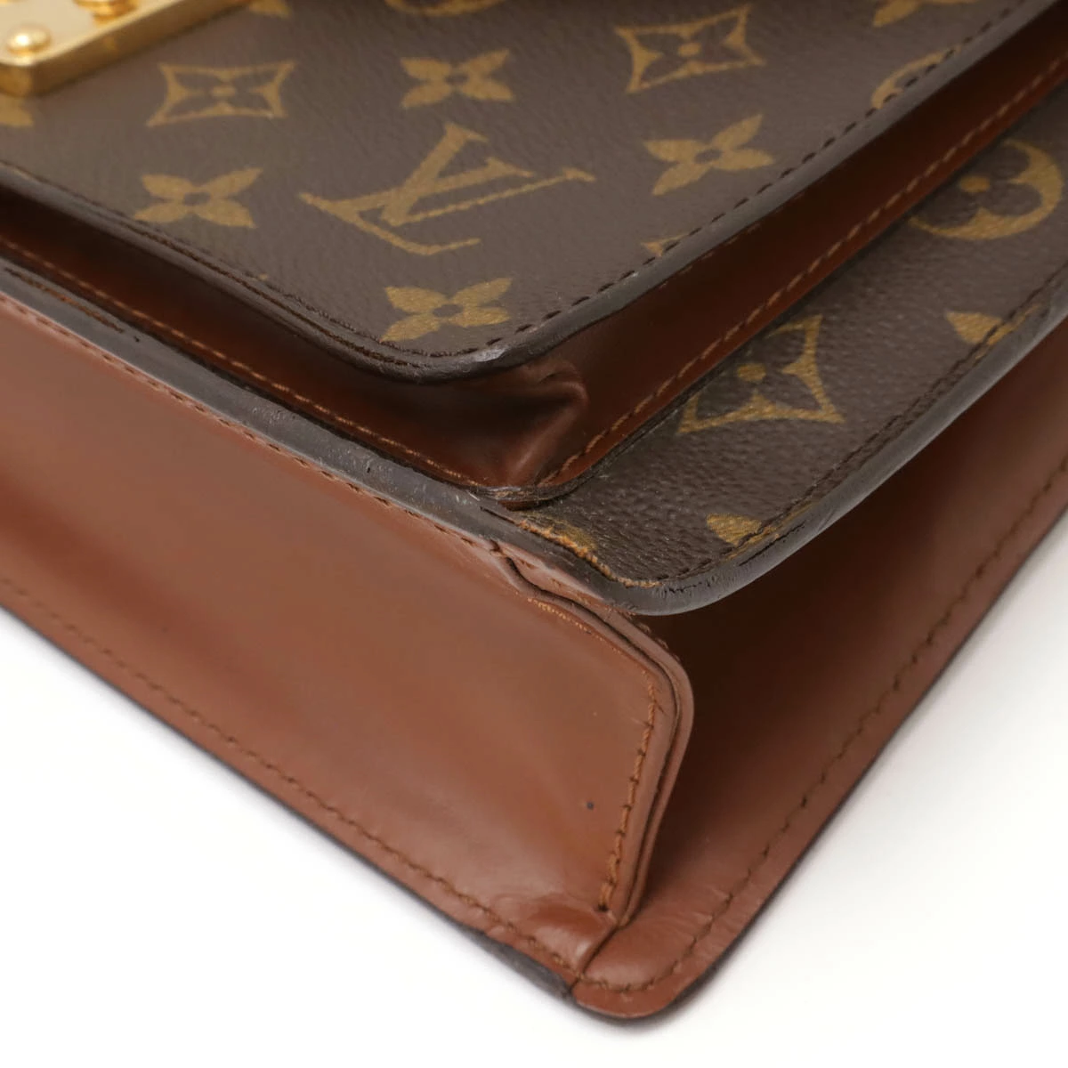 フチ反り、背面波打ちのようなヨレ、フラップコバ割れ、サイド薄汚れ