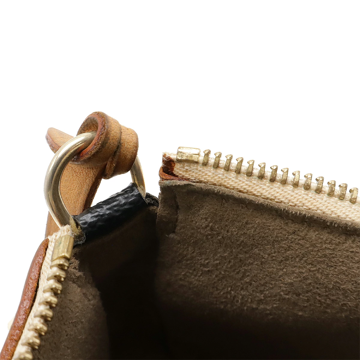 ヌメ革黒ずみ、若干のスレ、角スレ、ファスナーテープ一部ノリ染み、表面しっとり感