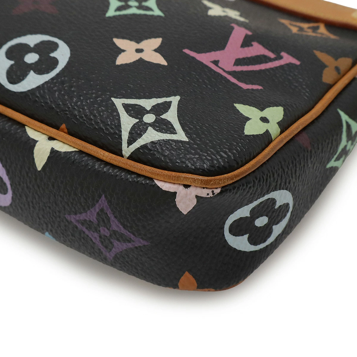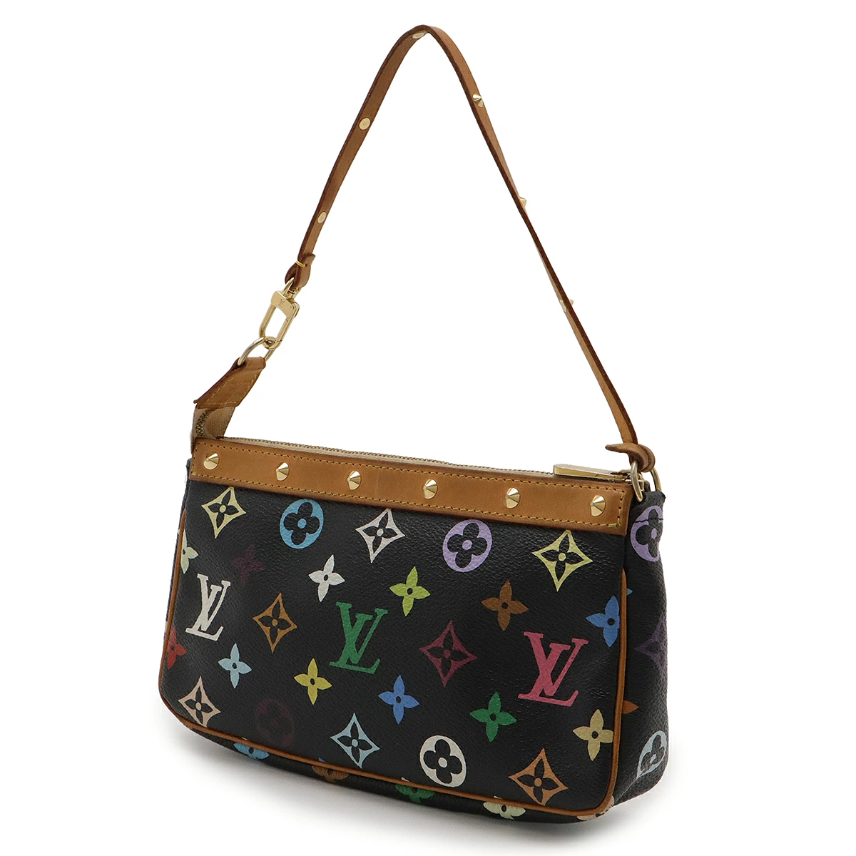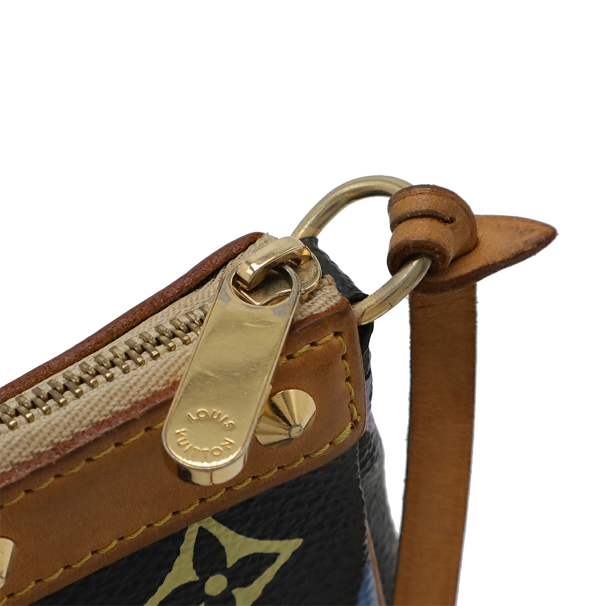 カラフルなロゴが全面に散りばめられた、ポップなデザインのオシャレなアクセサリーポーチでございます。
