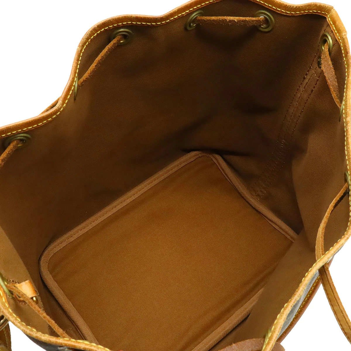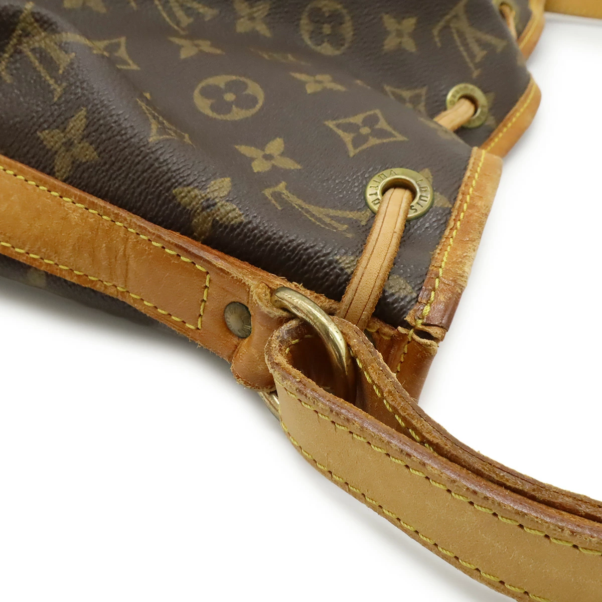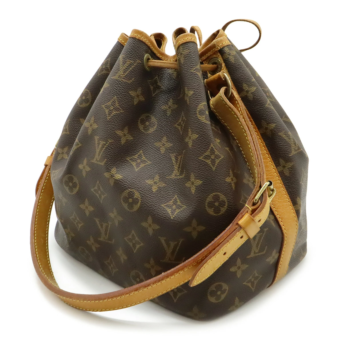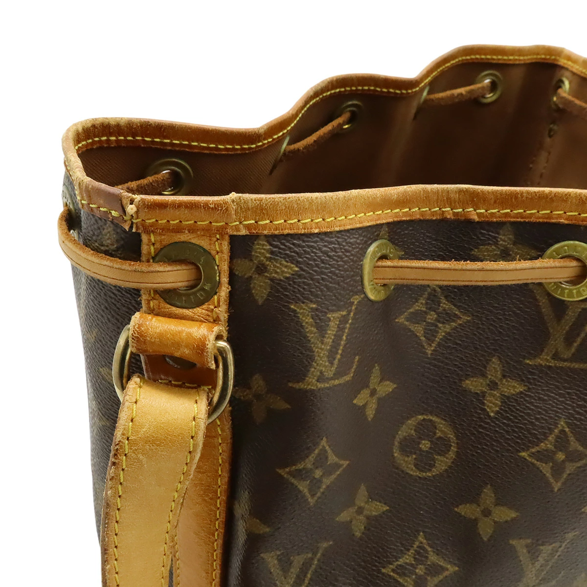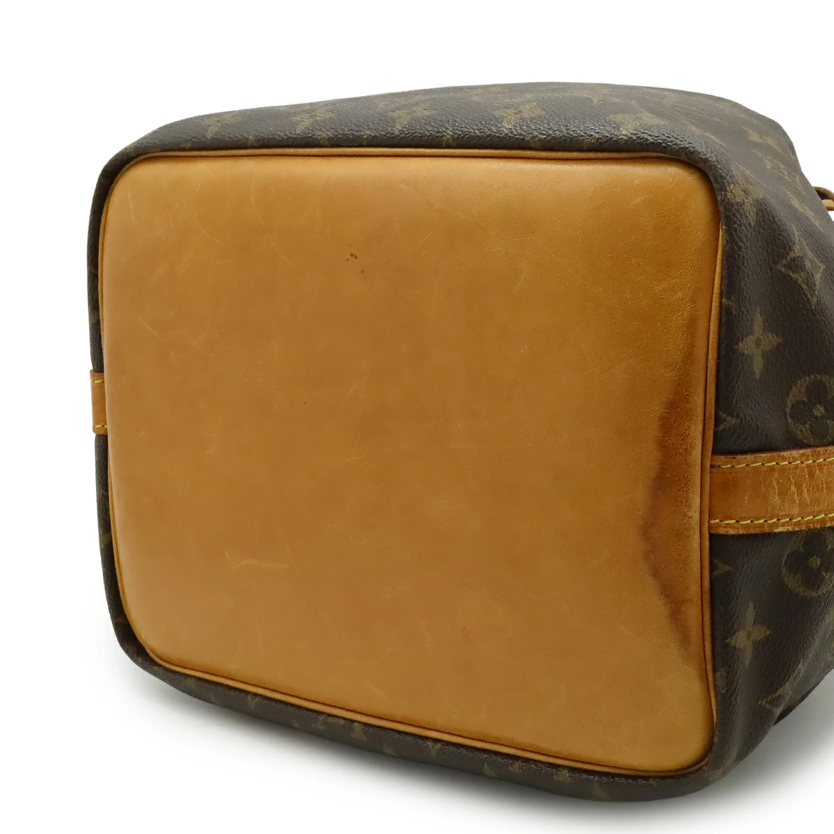 トアル地若干の白ボケ、間口切れ、紐毛羽立ち、ヌメ革キズ、シミ、スレ、ヤケ、ヒビ、若干の黒ずみ