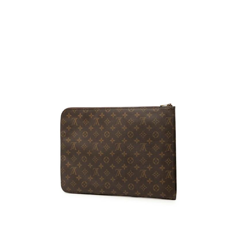 Pre-owned Louis Vuitton Monogram Poche Document Clutch/Briefcase M53456 in Brown PVC and Leather. Men's.