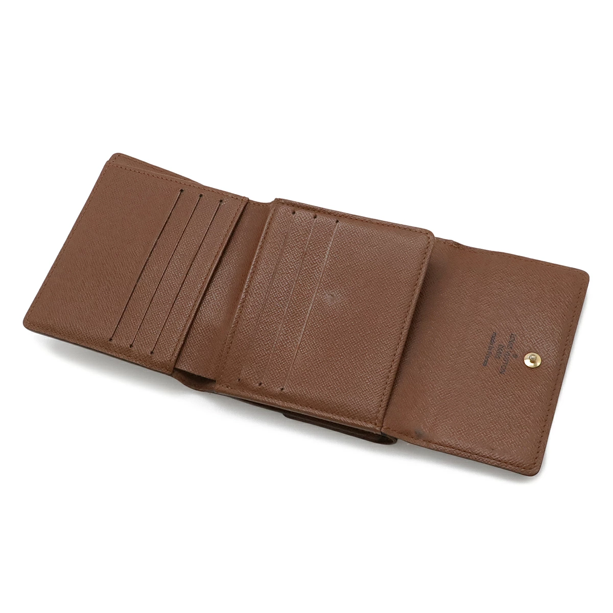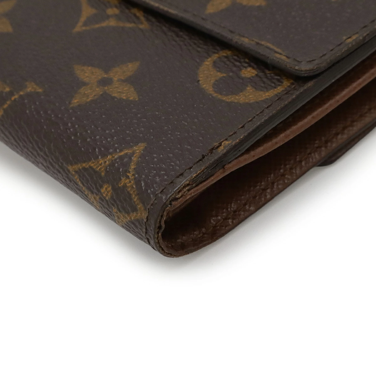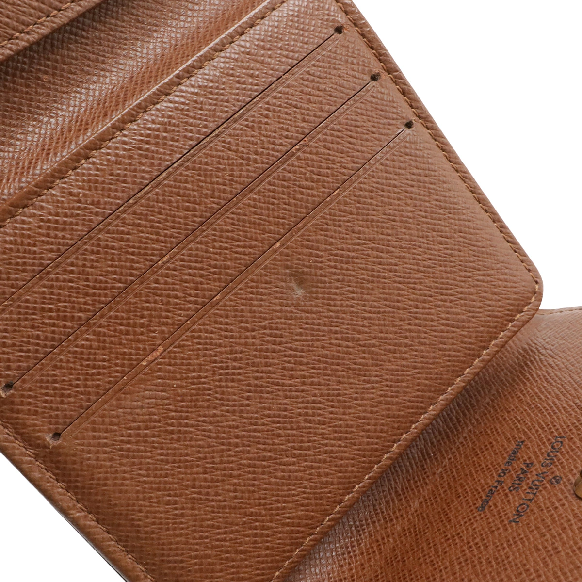 つぶれ、フラップズレ、サイド塗り跡、若干のフチ反り、小銭入れ内スレ