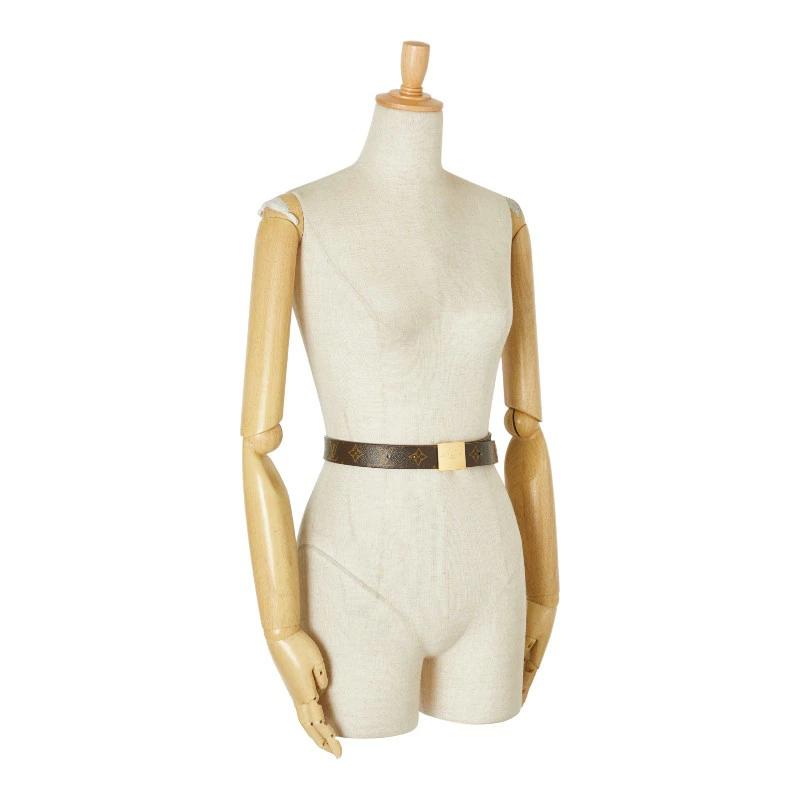 Pre-owned Louis Vuitton Monogram Santur Carré Belt, Size 75/30, M6800W, Brown PVC Leather, Women's.