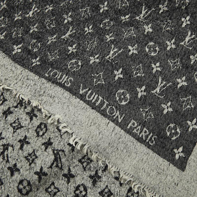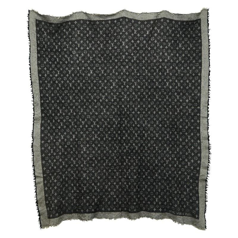Pre-owned Louis Vuitton Monogram Scarf in Black and Gray Silk and Wool for Women.