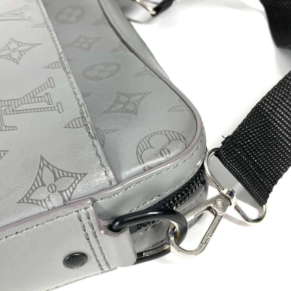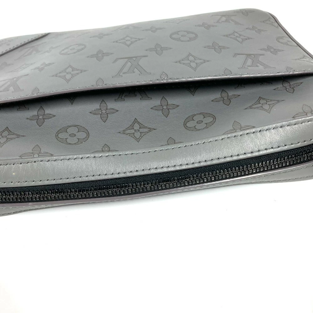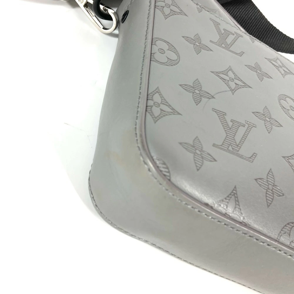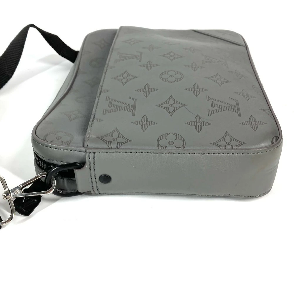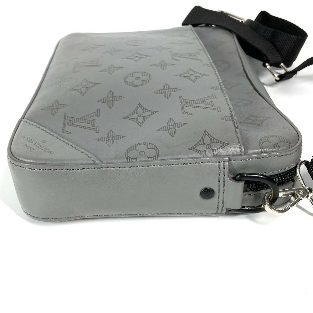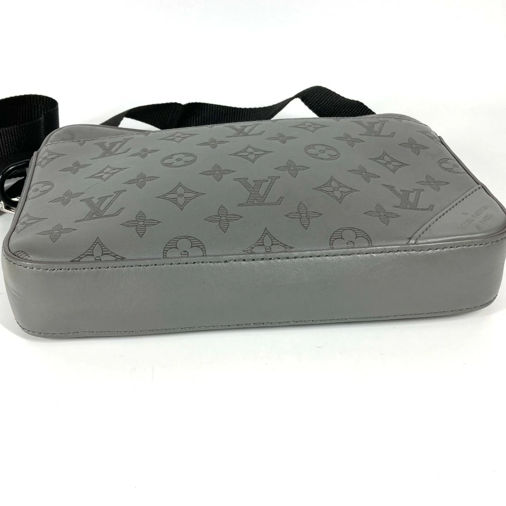 Pre-owned Louis Vuitton Monogram Shadow Duo Messenger Bag, Crossbody Bag, Clutch Bag, Shoulder Bag, Monogram Shadow Leather, Unisex, Gray.