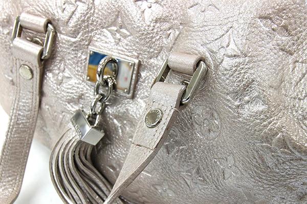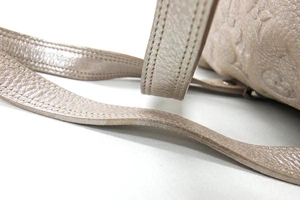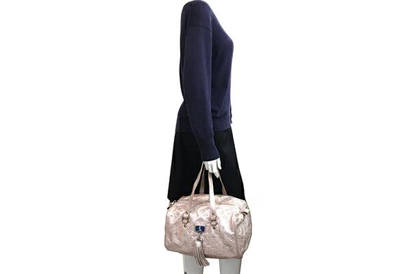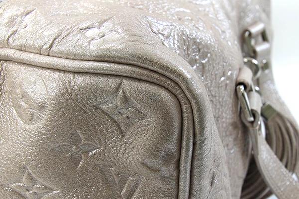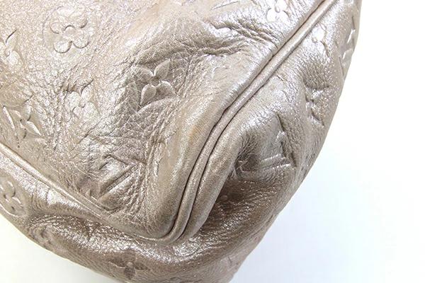 | 状態 | 外側:型崩れあり。所々薄汚れ・薄スレ、角スレあり。片側サイドフチに薄青っぽいスレ汚れあり。ハンドルに収納クセあり。 内側:ポケットに薄汚れあり。 金具:小キズ、スレ、クスミあり。 |