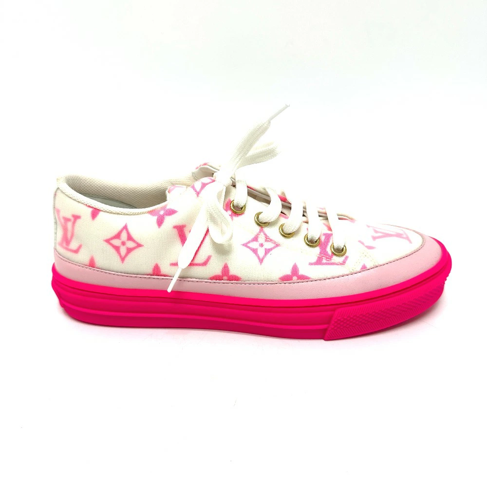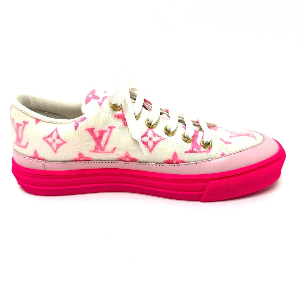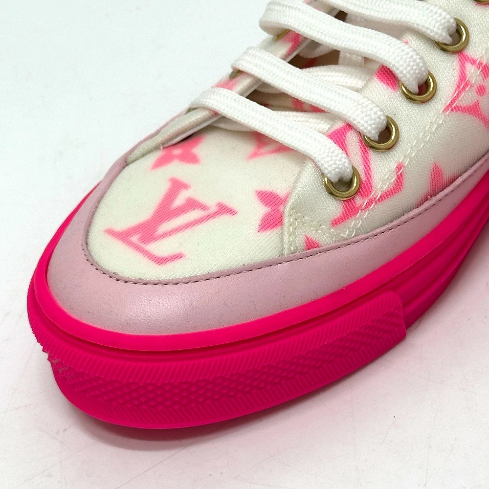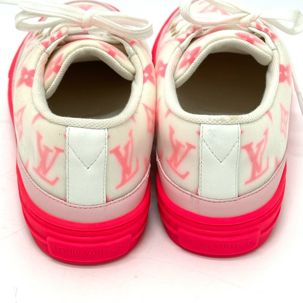 Pre-owned Louis Vuitton Monogram Stellar Line Technical Fabric Low-Top Canvas Sneakers, Women's, White and Pink.