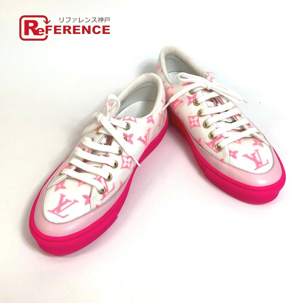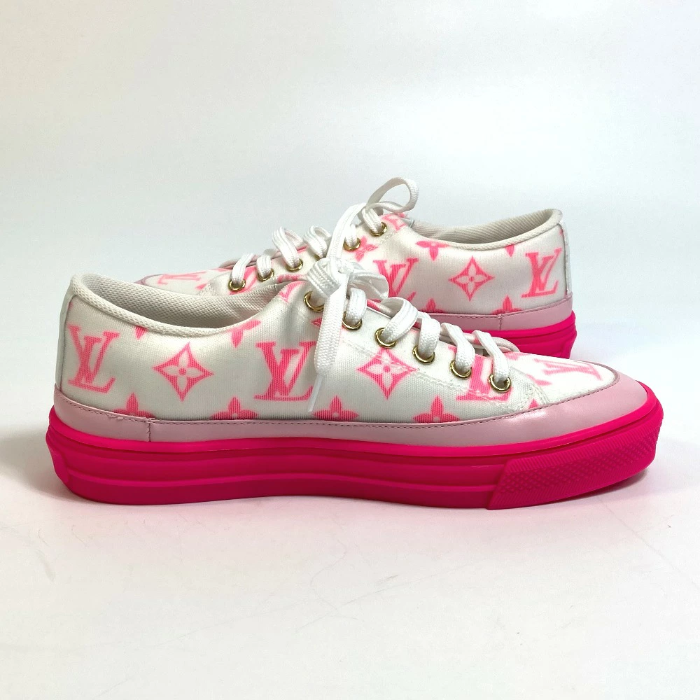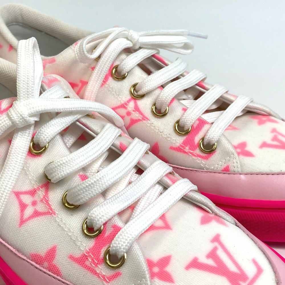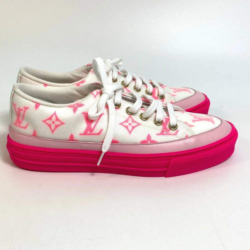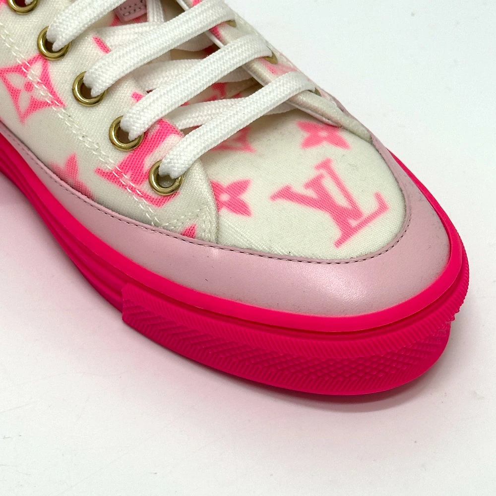 Pre-owned Louis Vuitton Monogram Stellar Line Technical Fabric Low-Top Canvas Sneakers, Women's, White and Pink.