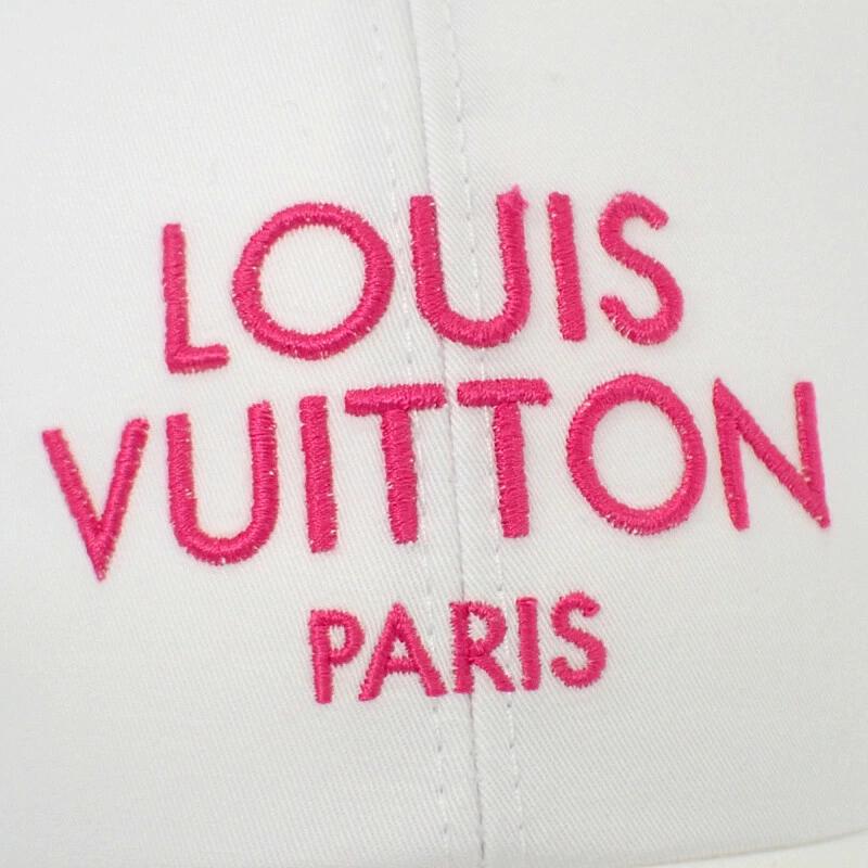 メゾンを象徴する「LOUIS VUITTON PARIS」のロゴを鮮やかなピンクの刺繍でデザインしたアイテム。