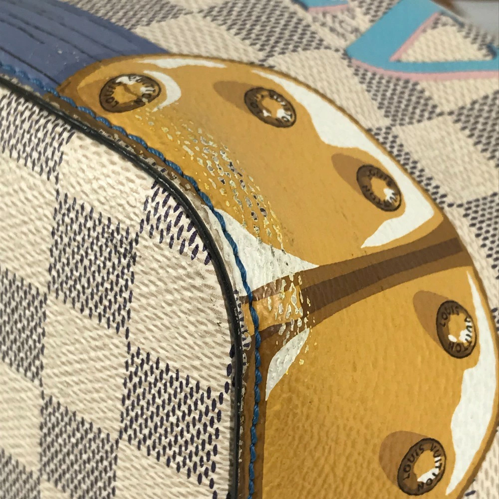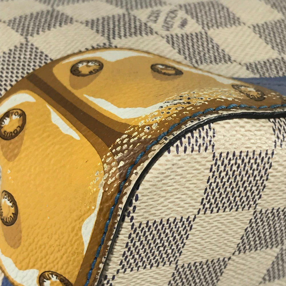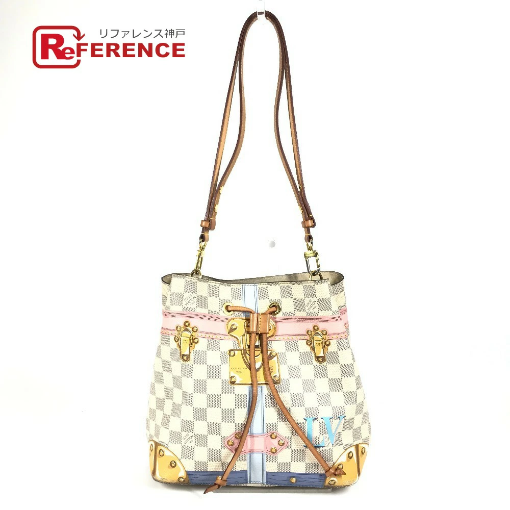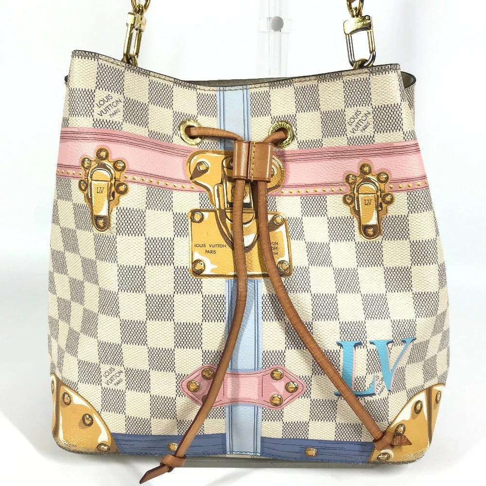 Pre-owned Louis Vuitton N41066 Damier Azur Summer Trunk NeoNoe Bag, a 2-way bag with a crossbody, drawstring, and bucket-shaped shoulder bag in Damier Azur canvas. Women's white.