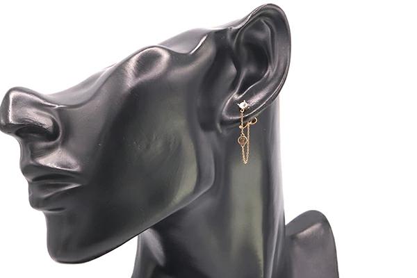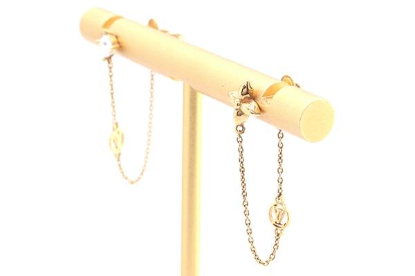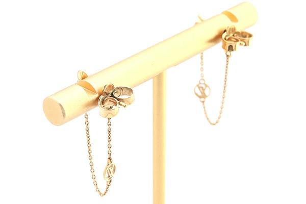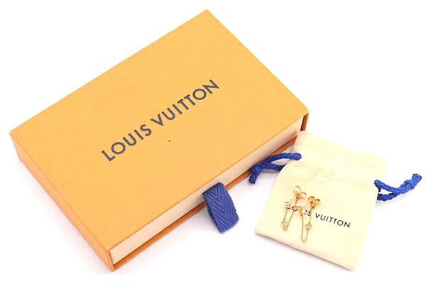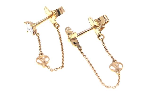 Pre-owned Louis Vuitton Petit Louis earrings M00390 in gold with a metal strass chain. Women's.