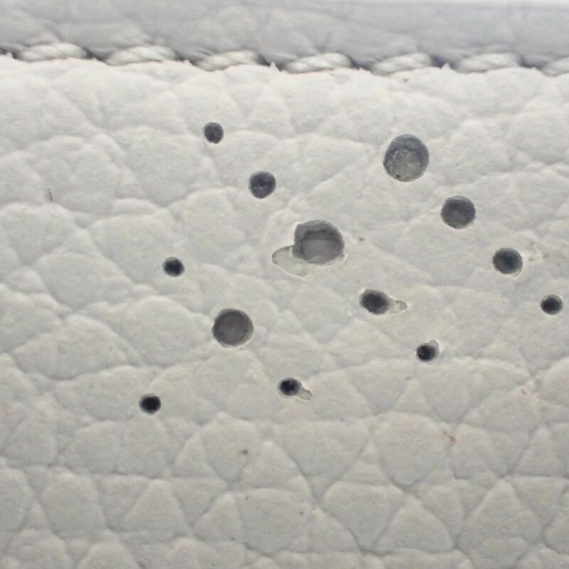 繊細に施されたパンチングのモノグラムマヒナレザーが特徴の、コンパクトながら高級感あふれる二つ折り財布。上品なブルームグレーの本体に、開いた時にふんわりと華やぐピンクのライニングが女性らしい表情をプラス。柔らかくしっとり手になじむレザーは、使うほどに深い味わいを増していきます。内側には複数のカードポケット、紙幣用コンパートメント、ジップ式コインケースを備え、日常使いに必要な機能性をしっかりとカバー。コンパクトサイズなのに収納力が高く、ミニバッグにもすっきり収まるちょうど良いサイズ感です。