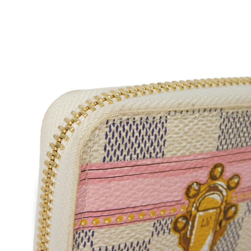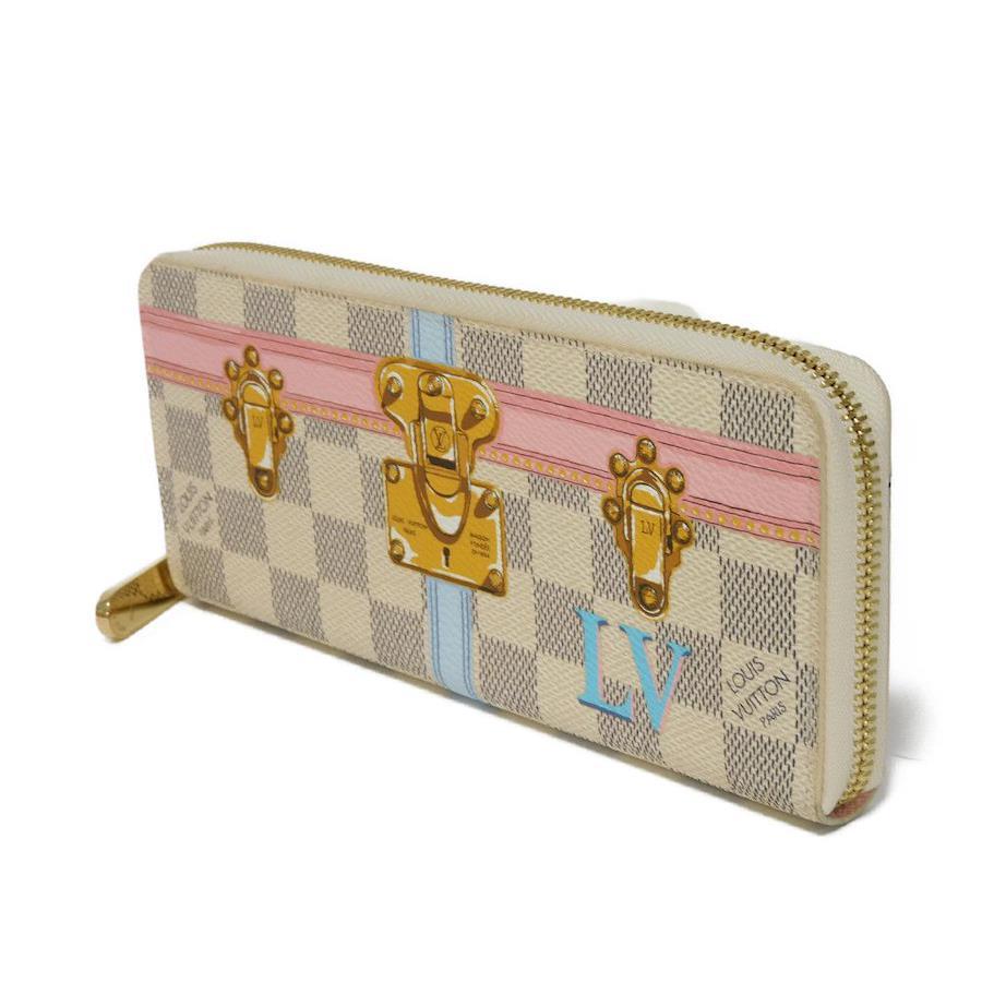| ルイヴィトンのダミエアズールキャンバスにトロンプルイユ(騙し絵)風のLVトランクのディテールやロゴがプリントされた「ポルトフォイユ・クレマンス」2018サマートランク・コレクション。 |