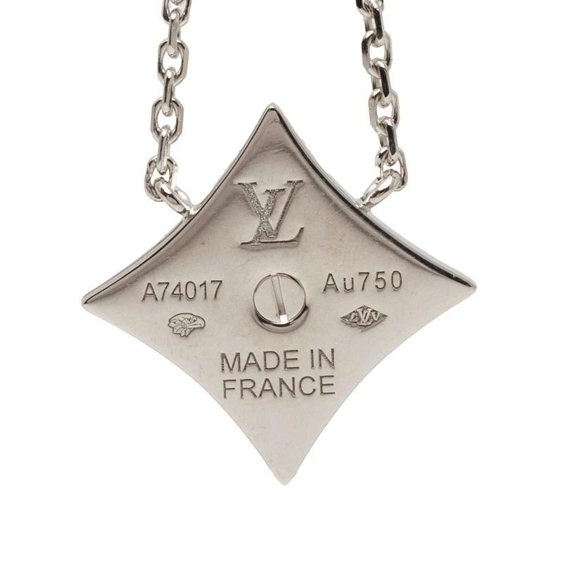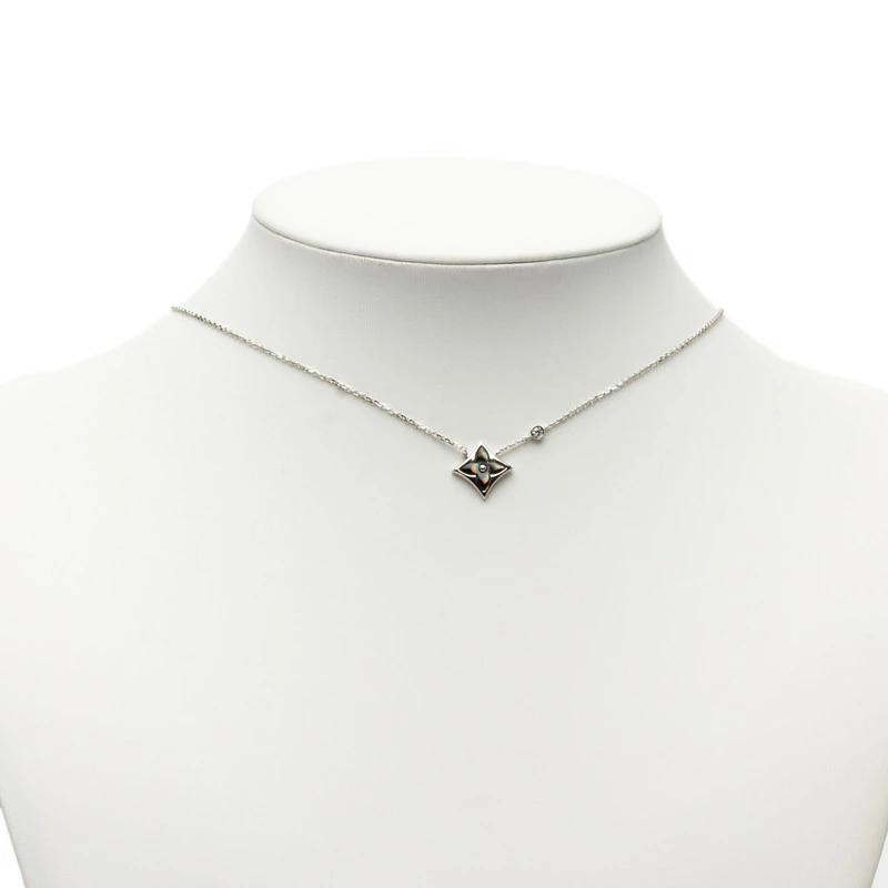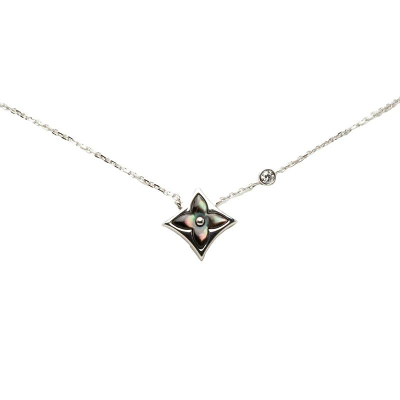 Pre-owned Louis Vuitton Star Blossom BB Necklace Q93696 in 18K White Gold and Gray Shell. Women's.